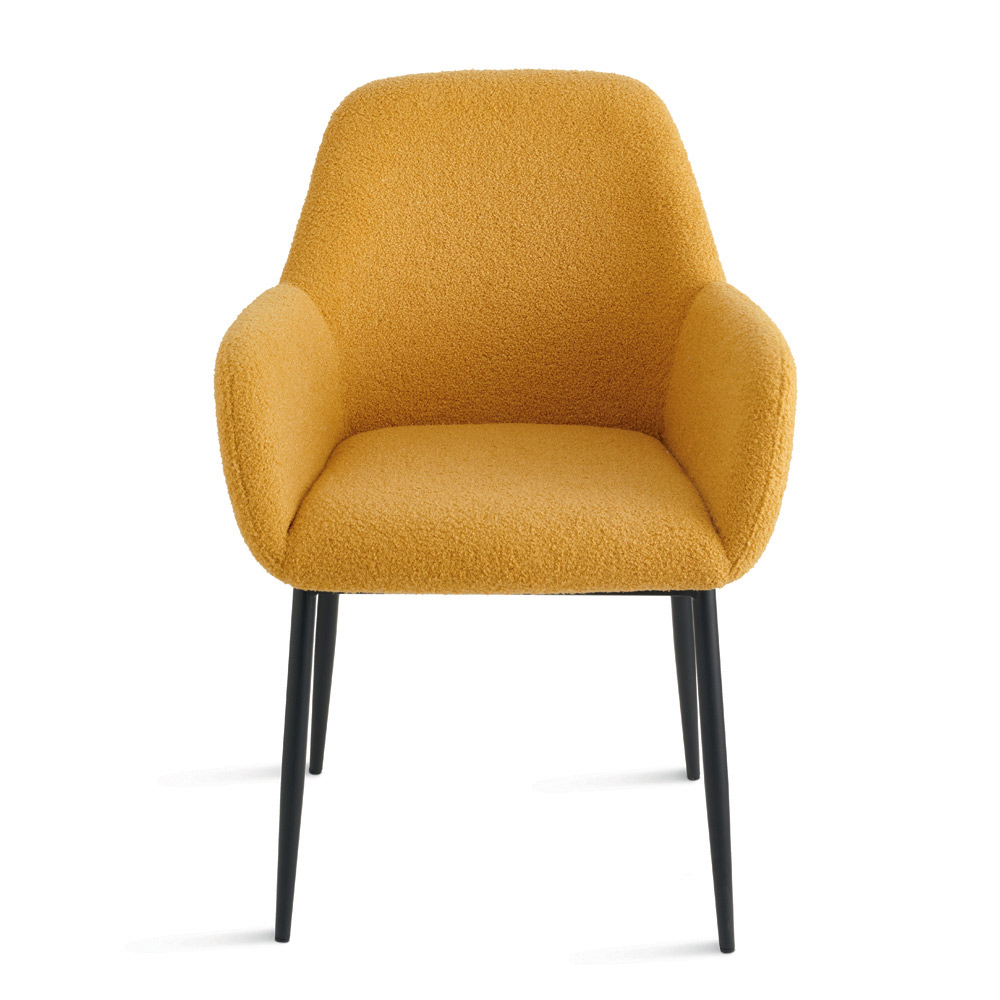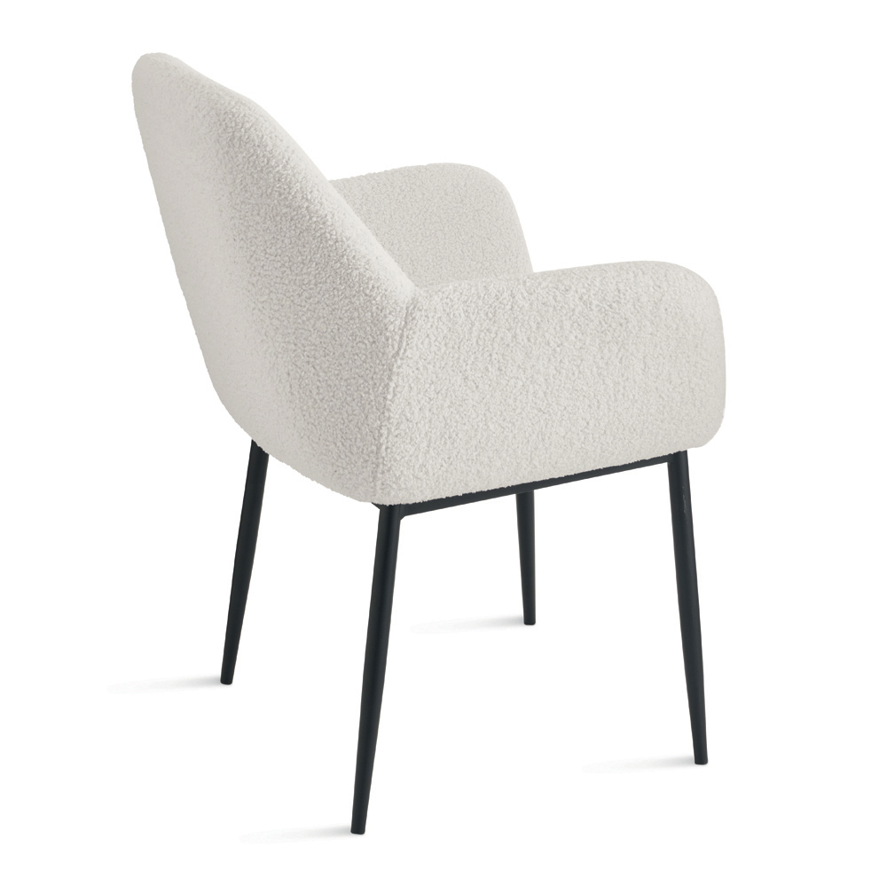 Židle se vyznačuje širokým a pohodlným sedákem s integrovanými područkami , které vytvářejí kompaktní geometrický tvar navržený pro větší pohodlí při každodenním používání. Látka buklé zvyšuje měkkost sedáku a vytváří dokonalou rovnováhu mezi estetikou a funkčností.