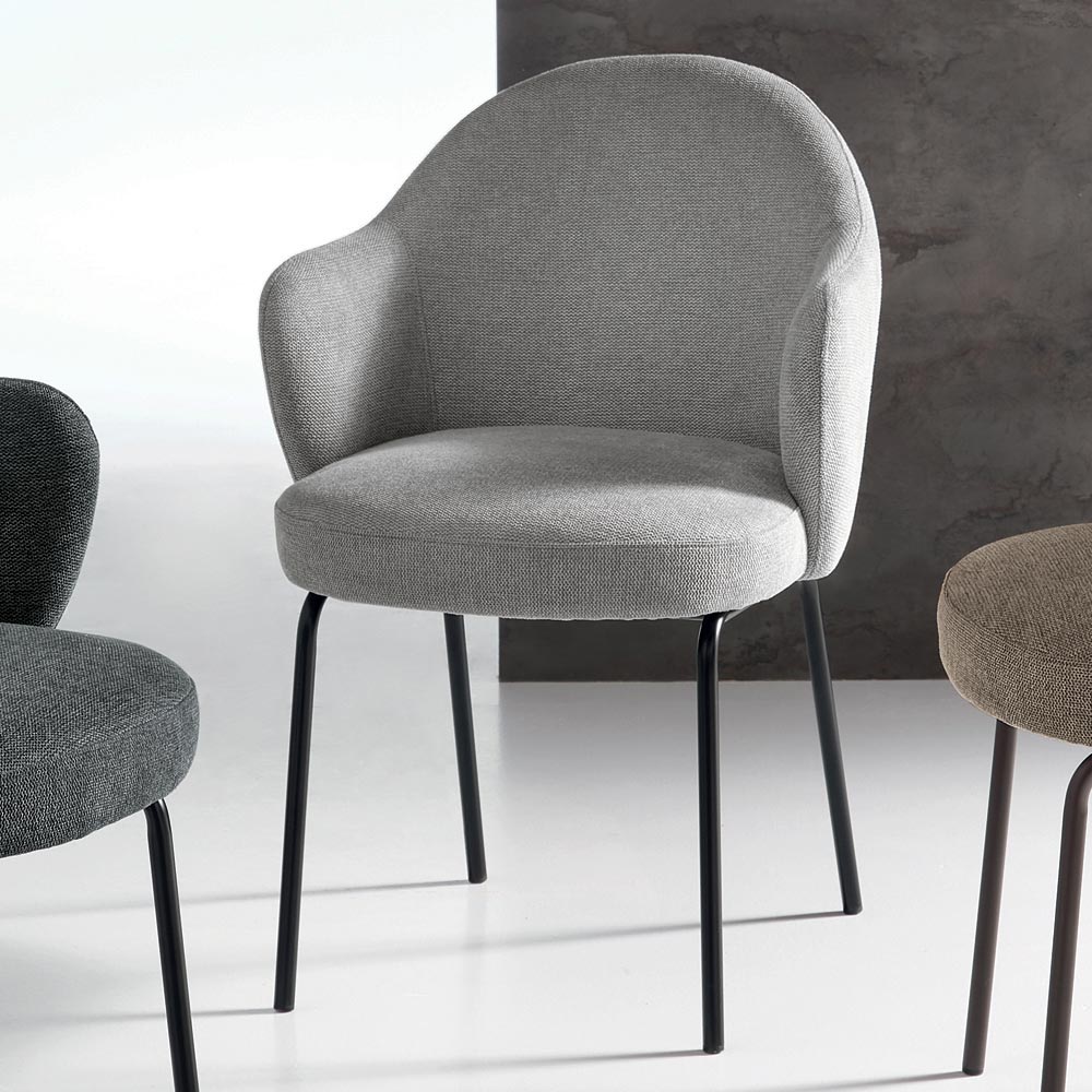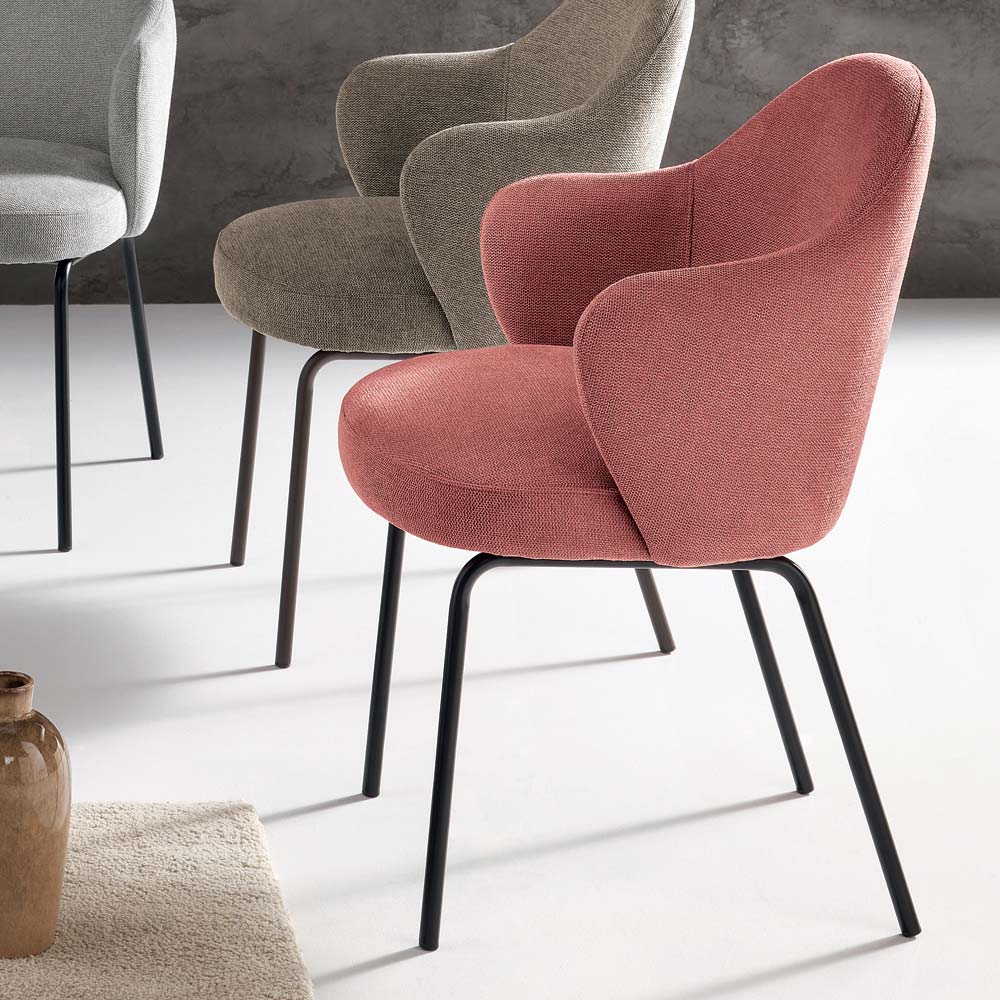 Židle se vyznačuje zakřiveným, souvislým opěradlem , které se jemně otevírá do dvou zaoblených područek , což nabízí příjemný pocit jak vizuálně, tak i funkčně. Pružinový sedák zajišťuje vysoké pohodlí i při delším používání.