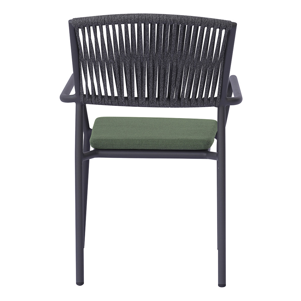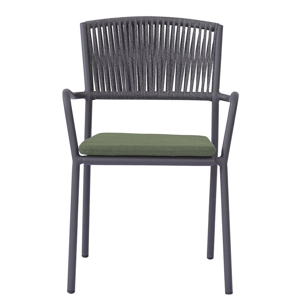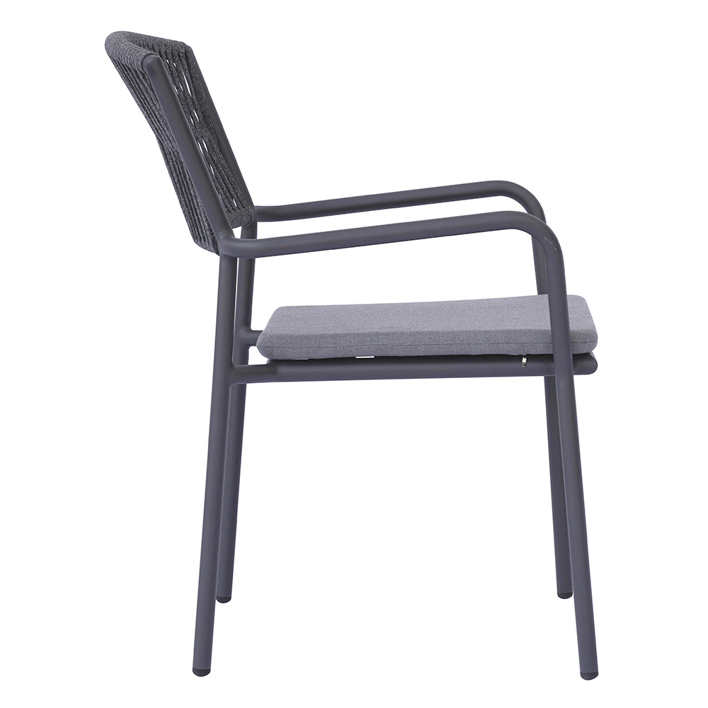 Venkovní lanové opěradlo dodává rafinovaný, moderní nádech a zajišťuje pohodlí a prodyšnost, zatímco hliníkový sedák s odpovídajícím polštářem nabízí měkkost a pohodlí, díky čemuž je každý okamžik relaxace ještě příjemnější.