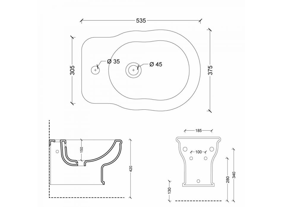 Klasický bílý keramický závěsný bidet Style 54x36 cm, vyrobený v Itálii