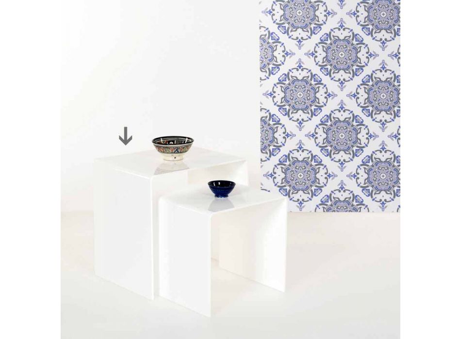 Bílá tabulka 50x50cm Terry Big moderní design, vyrobeno v Itálii Univerzální malý stůl / bílá noční, inspirovaný geometrií 80s, ze 100% dosud nepoužitý polymer, plexiskla PMMA, laser-nařezaného a ohýbaného při vysokých teplotách. Důležitou tloušťka činí konstrukci zcela samonosná. Prodává se samostatně, ale je ideální, pokud v kombinaci s dvojčatový Terry malý. Z plexiskla je odolný proti nárazu, pružné, odolné a tepelně izolační. Jas a jas zůstávají konstantní a beze změny v průběhu času. Z plexiskla PMMA z panenského polymeru používá netoxické, hypoalergenní, bez zápachu a antibakteriální. Recyklovatelné 100%. Počala navržený a vyrobený v Itálii, s italskými materiály.