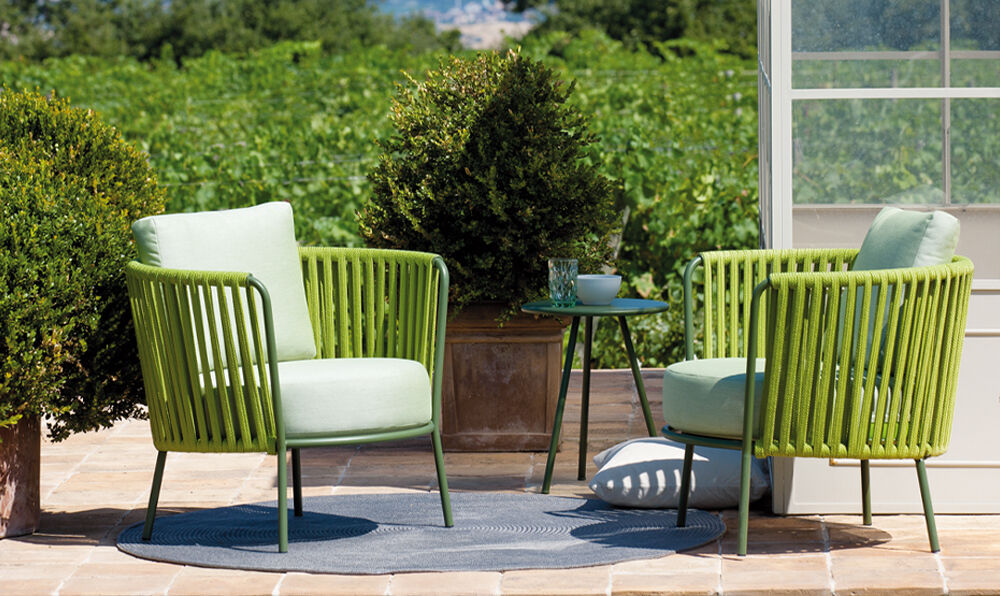 Je zřejmé, že nezbytným požadavkem na venkovní nábytek není jen krása, ale především jehoschopnost odolat jakémukoli typu počasí : z tohoto důvodu máme tendenci používat nábytek ze železa nebo polyratanu, syntetického technologického materiálu, který je voděodolný a odolný vůči slunečnímu záření a atmosférickým vlivům.