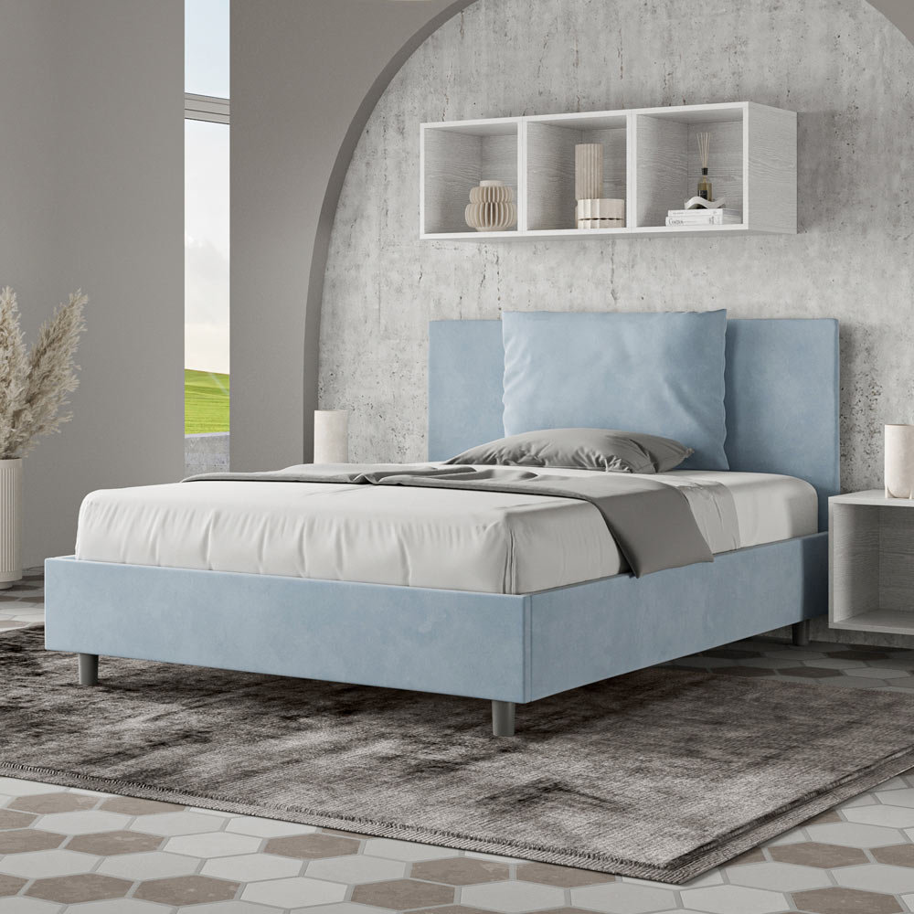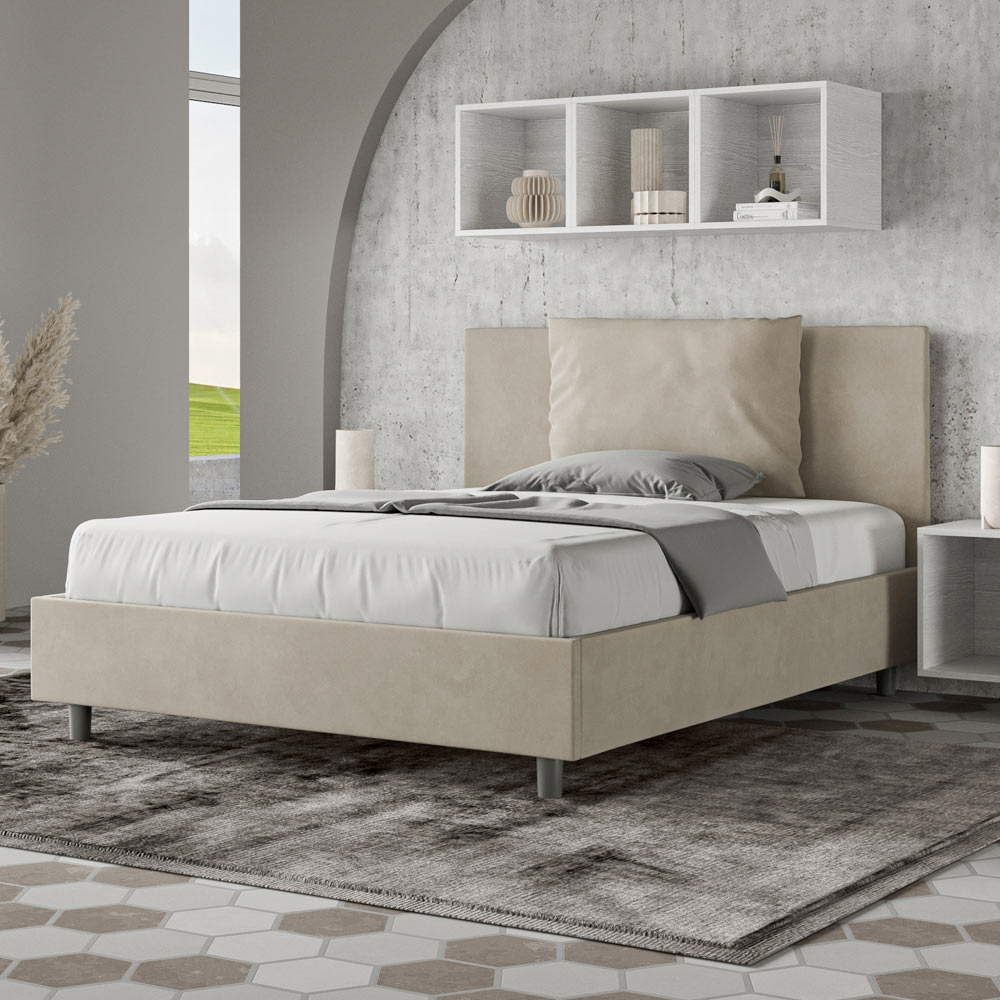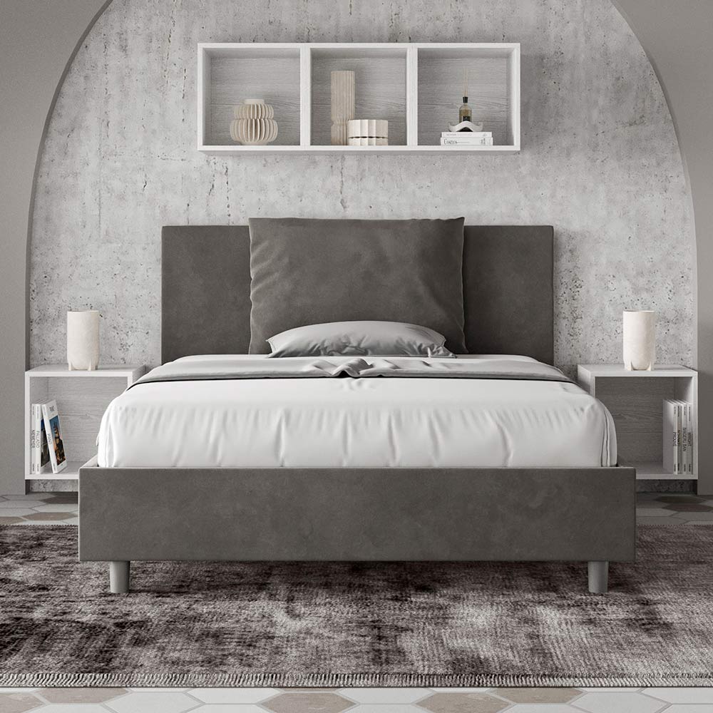 Francouzská postel 140x200 cm s čalouněním z melaminových panelů a potahem z mikrovlákna , kompletně vyrobená v Itálii. Tato francouzská postel s čalouněným rámem dokonale ztělesňuje výhody čalouněné postele: pohodlí, moderní styl, funkčnost a efektivní využití prostoru . Tato postel s širokým polstrovaným čelem nabízí relaxační koutek ideální pro čtení nebo sledování televize a vylepší tak vaši ložnici. Elegantní a stylová postel je čalouněna mikrovláknem, takže čištění je rychlé a snadné: stačí ji otřít hadříkem z mikrovlákna, aby zůstala zářivá.