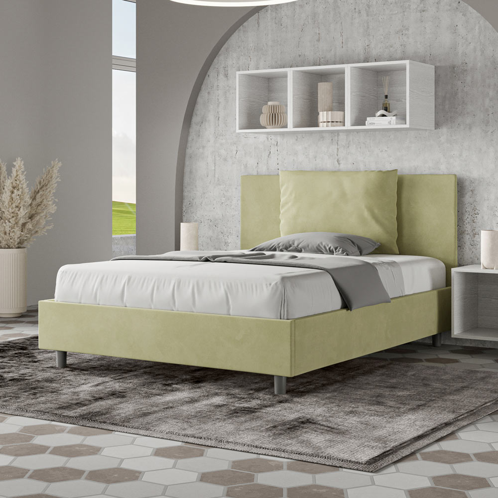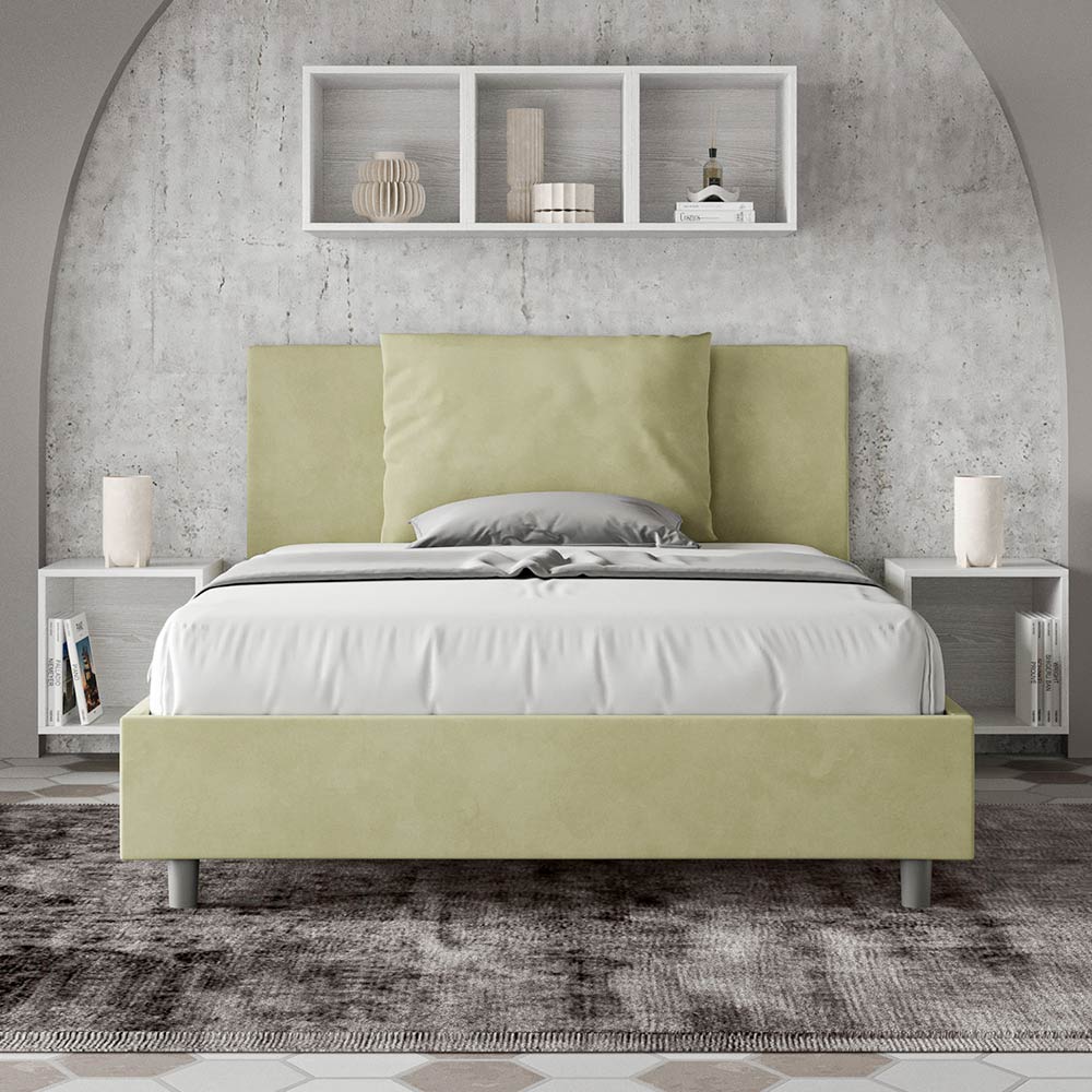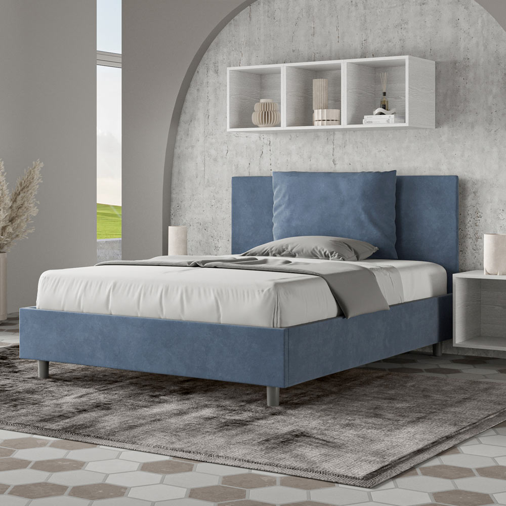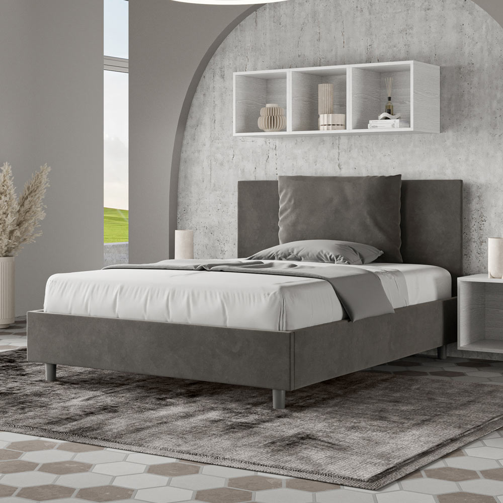 Francouzská postel 140x200 cm s čalouněním z melaminových panelů a potahem z mikrovlákna , kompletně vyrobená v Itálii. Tato francouzská postel s čalouněným rámem dokonale ztělesňuje výhody čalouněné postele: pohodlí, moderní styl, funkčnost a efektivní využití prostoru . Tato postel s širokým polstrovaným čelem nabízí relaxační koutek ideální pro čtení nebo sledování televize a vylepší tak vaši ložnici. Elegantní a stylová postel je čalouněna mikrovláknem, takže čištění je rychlé a snadné: stačí ji otřít hadříkem z mikrovlákna, aby zůstala zářivá.