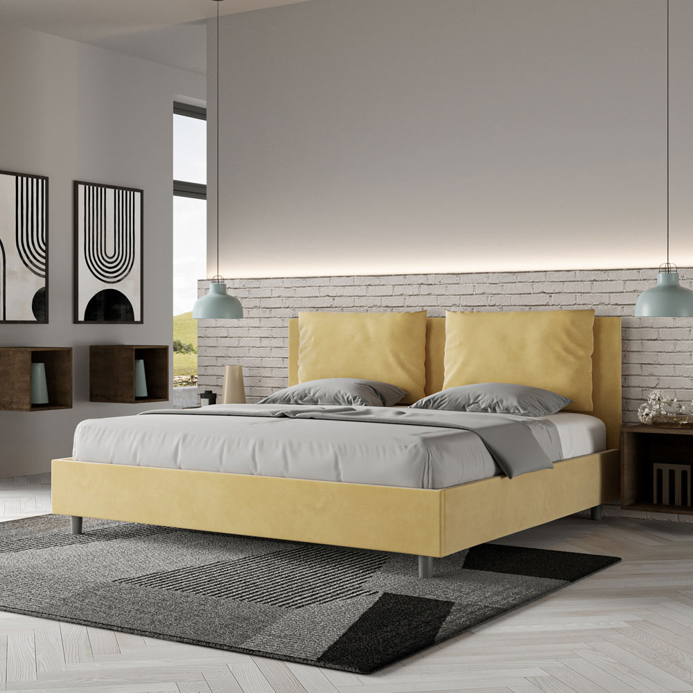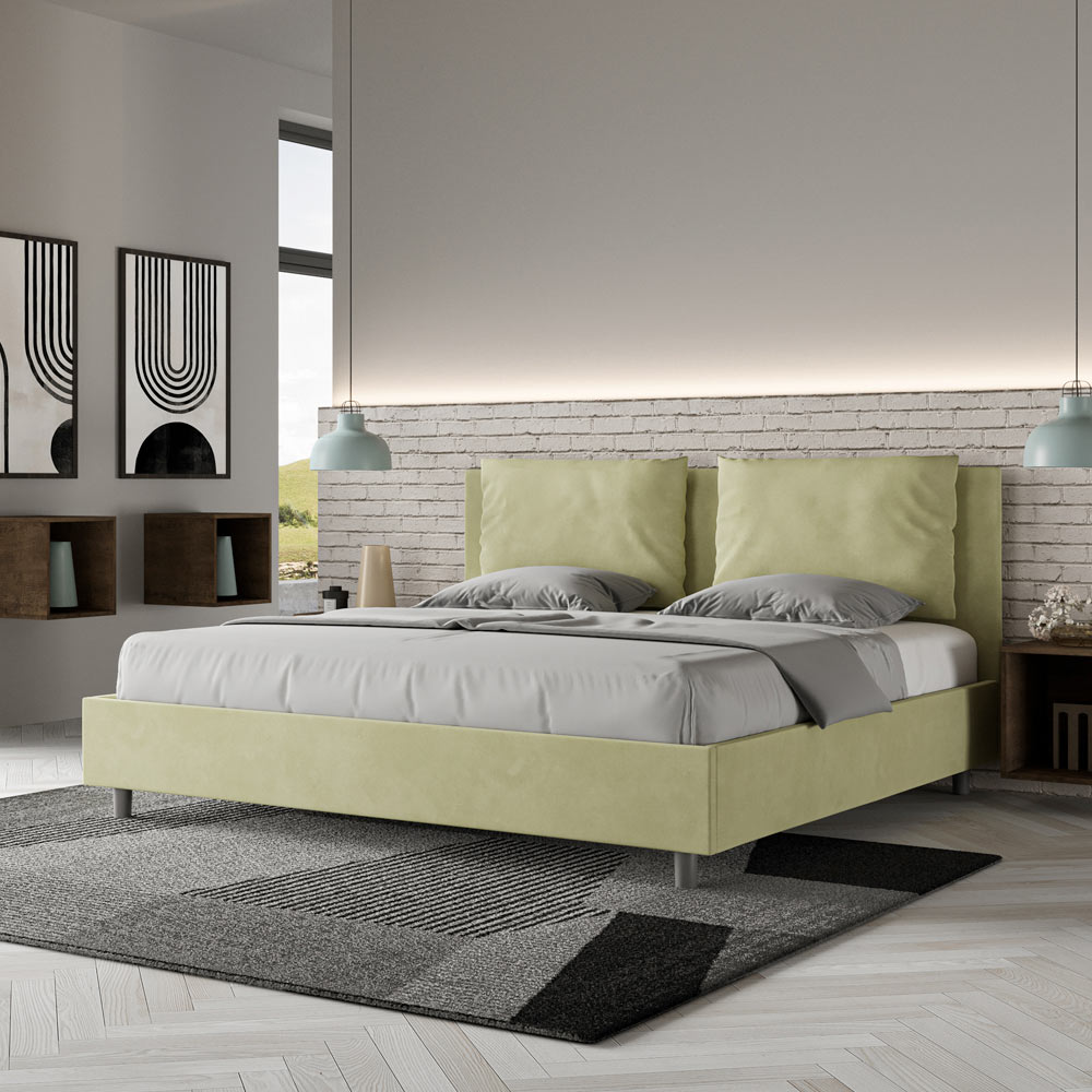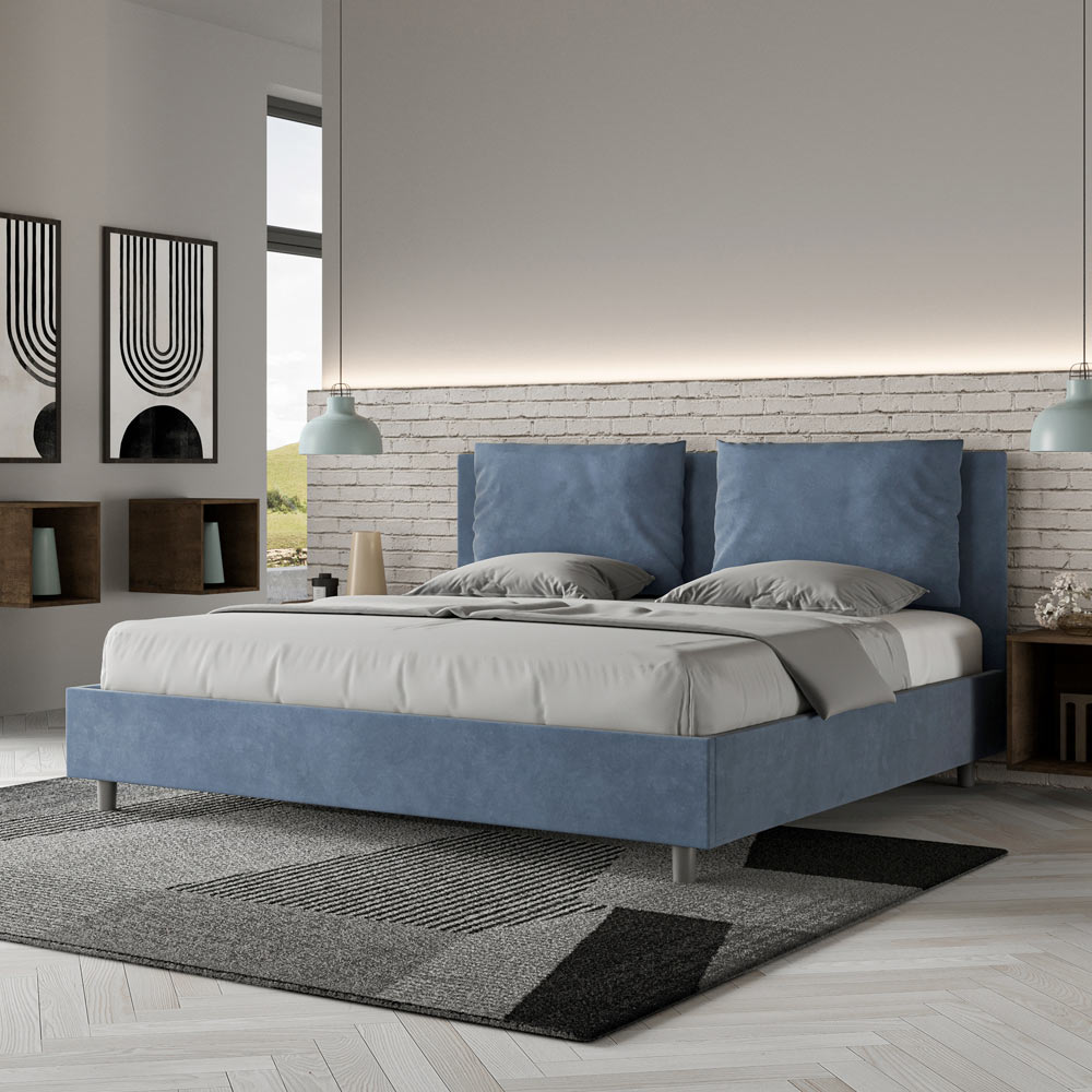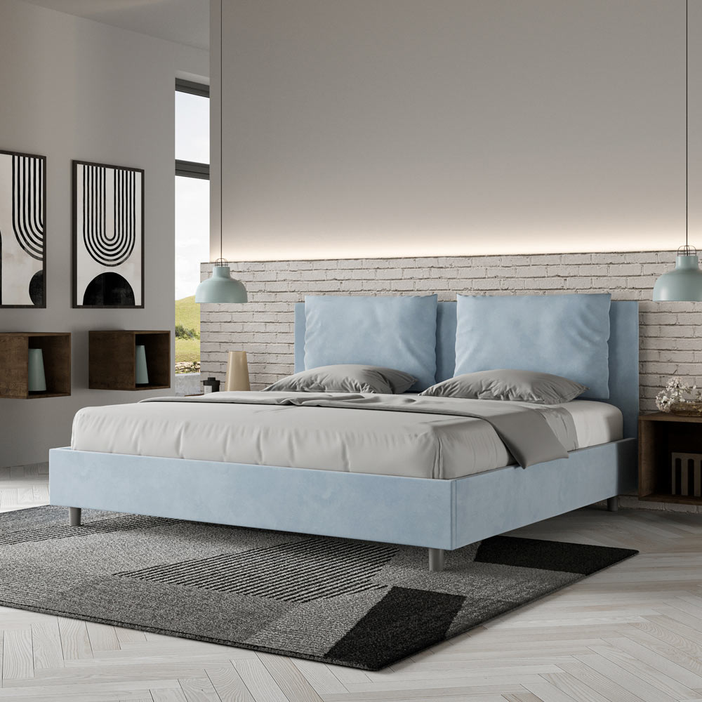 Postel velikosti King size 190x200 cm s čalouněním z melaminových panelů a potahem z mikrovlákna , kompletně vyrobeno v Itálii. Tato postel velikosti king size s čalouněným rámem dokonale ztělesňuje výhody čalouněné postele: pohodlí, moderní styl, funkčnost a efektivní využití prostoru . Tato postel s širokým polstrovaným čelem nabízí relaxační koutek ideální pro čtení nebo sledování televize a vylepší tak vaši ložnici. Tato elegantní a stylová postel je čalouněna mikrovláknem, takže čištění je rychlé a snadné: stačí ji otřít hadříkem z mikrovlákna, aby zůstala zářivá.