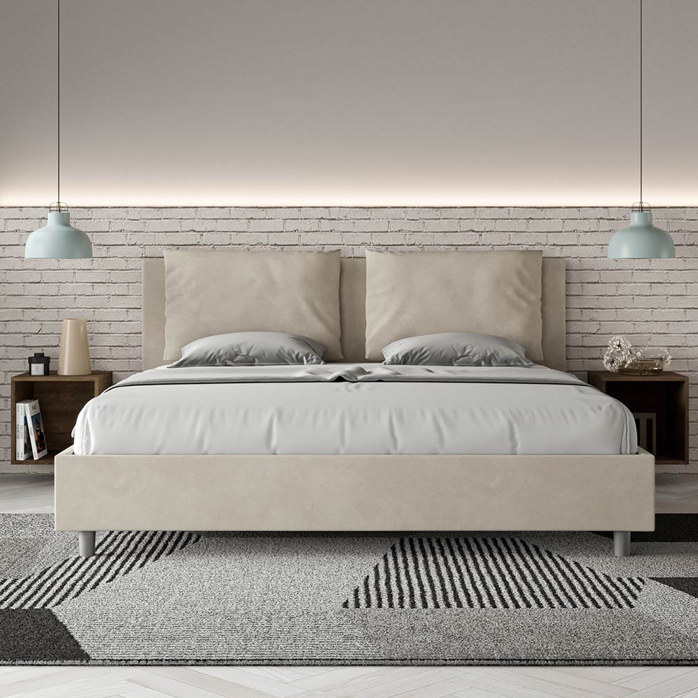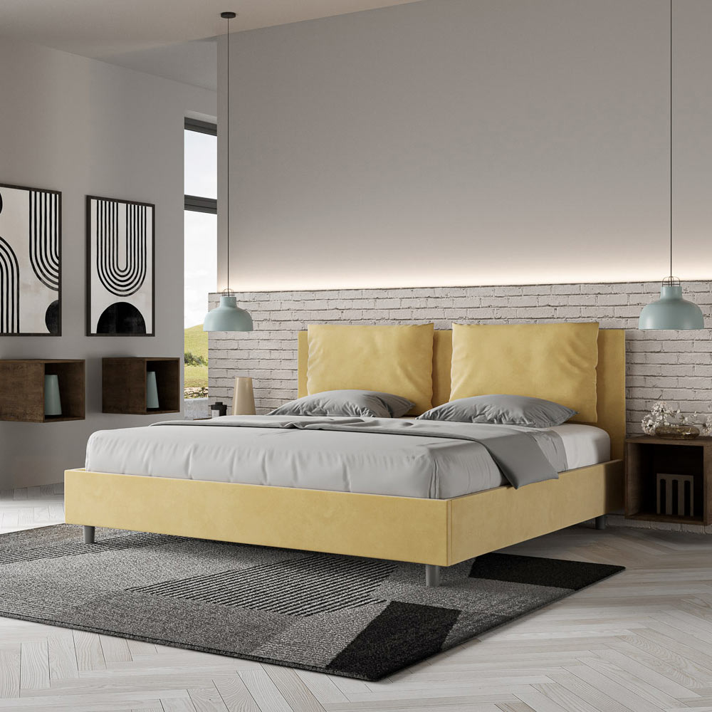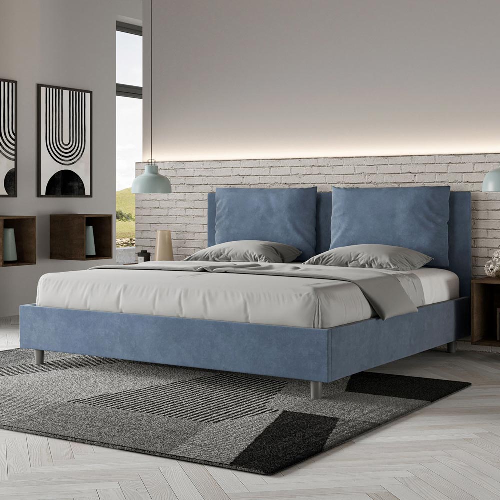 Velká manželská postel o rozměrech 200x200 cm s čalouněním z melaminových panelů a potahem z mikrovlákna , vyrobeno výhradně v Itálii. Tato super king size postel s čalouněným rámem dokonale ztělesňuje výhody čalouněné postele: pohodlí, moderní styl, funkčnost a efektivní využití prostoru . Tato postel s širokým polstrovaným čelem nabízí relaxační koutek ideální pro čtení nebo sledování televize a vylepší tak vaši ložnici. Tato elegantní a stylová postel je čalouněna mikrovláknem, takže čištění je rychlé a snadné: stačí ji otřít hadříkem z mikrovlákna, aby zůstala zářivá.
