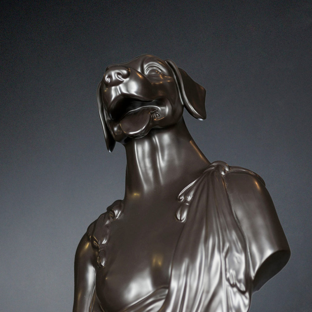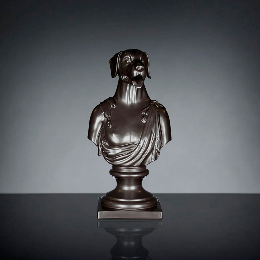 Dekorativní keramická socha ručně vyrobená italskými řemeslníky znázorňující Arga, Ulyssesova psa.