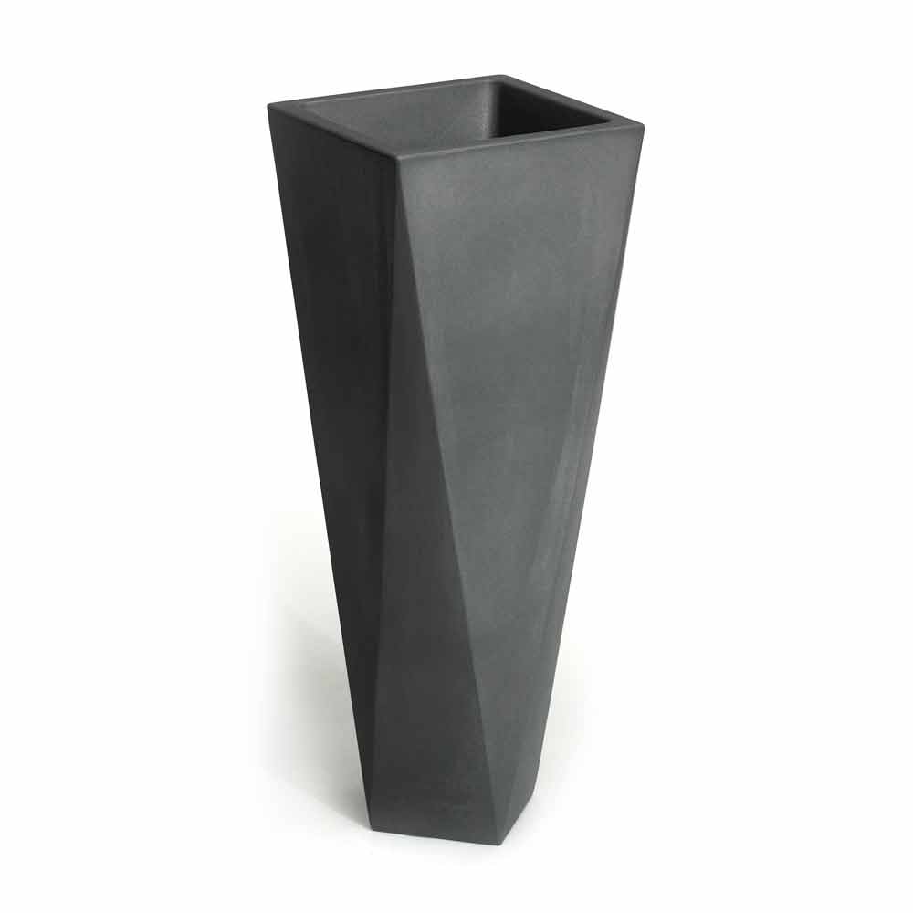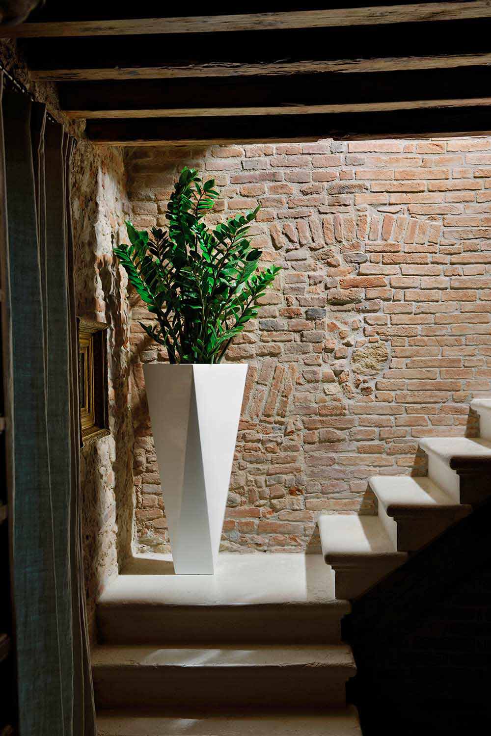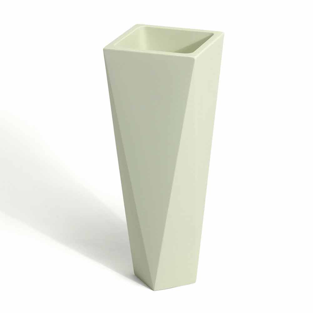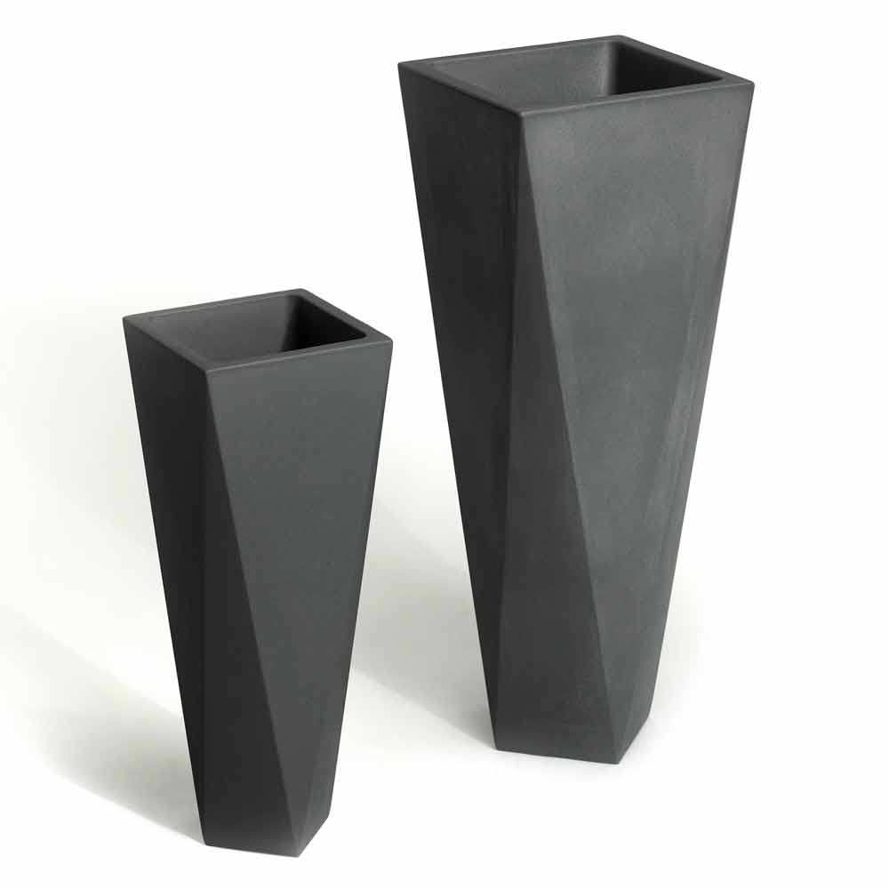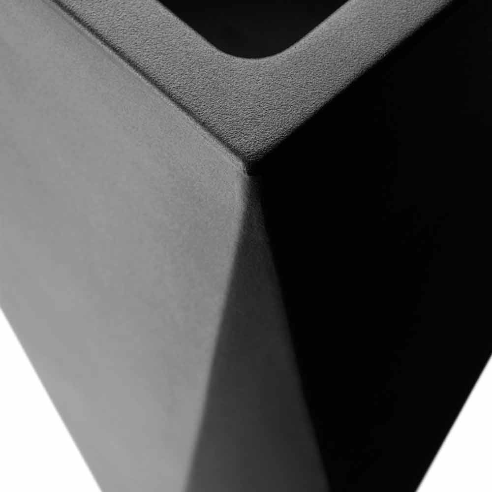 polyethylenu, který je k dispozici v neprůhledné verzi, která se vyznačuje vynikající odolností proti slunci, nárazům a teplu, v odolné a zářivě lakované verzi, která umožňuje vytvářet hry světla a odrazů. že se stávají protagonisty v prostředí nebo konečně v metalické verzi. Ideální pro střední a malé rostliny, tato váza je k dispozici ve dvou různých velikostech, aby uspokojila všechny typy potřeb a lépe se přizpůsobila různým situacím při zařizování.