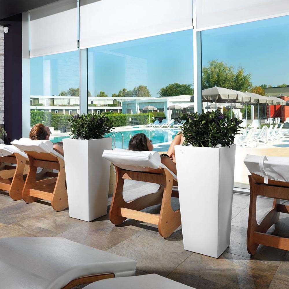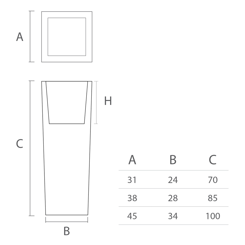Tato venkovní váza vyrobená v Itálii je vyrobena z barevného polyetylenu , vysoce kvalitního materiálu užitečného pro zajištění maximální odolnosti a skvělé stability produktu. Tento zařizovací prvek se vyznačuje minimalistickým a originálním designem , tvořeným základními liniemi a čtvercovým tvarem, který se mírně rozšiřuje směrem ven, jako by přivítal rostliny a květiny s teplem a elegancí.