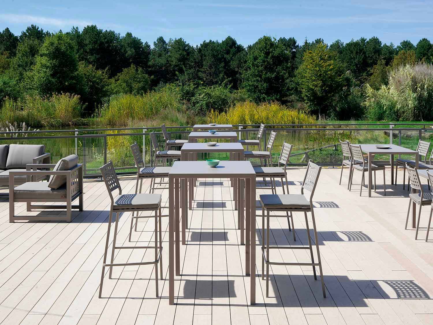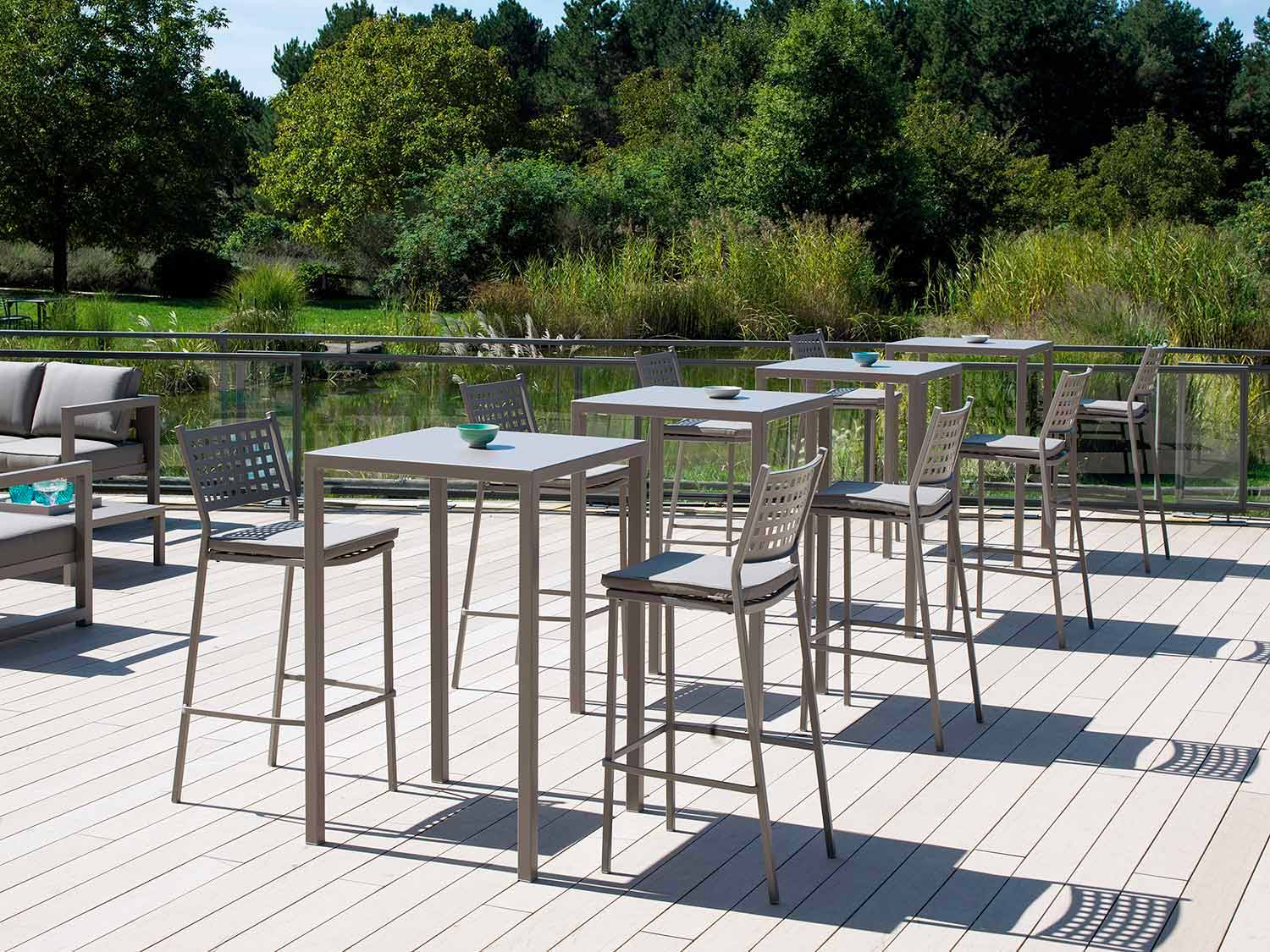 venkovní barový stůl se vyznačuje materiálem, ze kterého je vyroben, a specifickou technikou lakování. Pro jeho konstrukci je použito práškově lakované pozinkované železo, které je následně natřeno termosetovými prášky, které jsou ideální pro zajištění pevnosti výrobku bez zanedbání vizuální stránky. Stůl je také samonivelační, což znamená, že díky své specifické struktuře je schopen najít stabilitu na jakémkoli typu povrchu.