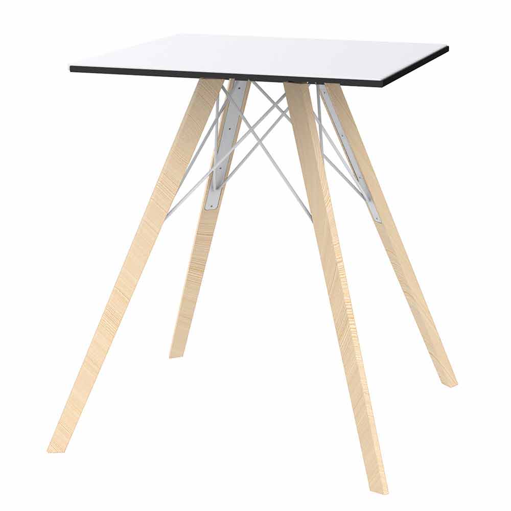 Čtvercový designový jídelní stůl z jasanového dřeva a bílé nebo černé desky HPL a 3 velikosti, 4 kusy.