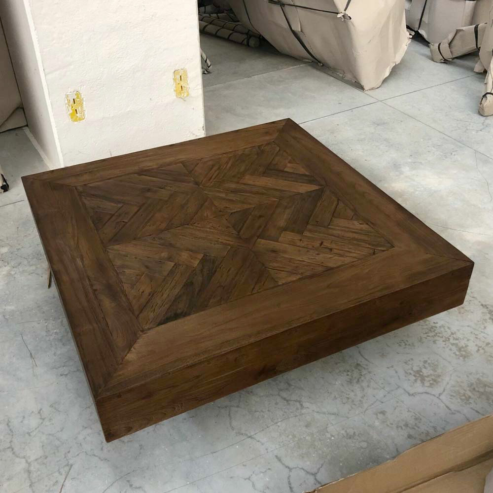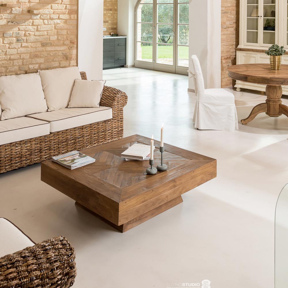 Vyrobený čtvercový interiérový konferenční stolek v barvě recyklovaného dřeva káva natural .