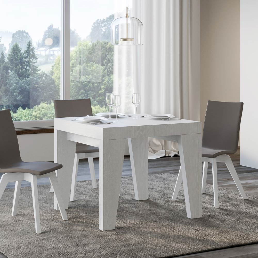 Jídelní stůl rozkládací vyrobený zmikročástic dřeva, výhradně vyrobeno v Itálii. Postupně lze vkládat nástavce, které umožňují mezidélkové konfigurace, takže si můžete vybrat, zda jej budete používat s jedním, dvěma nebo třemi nástavci podle svých prostorových potřeb. Pokud se nástavce nepoužívají, měly by být uloženy jinde a nenacházet místo v konstrukci stolu.