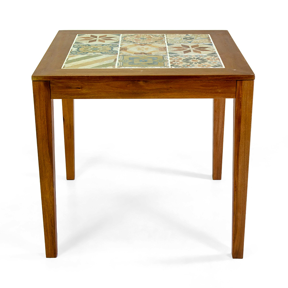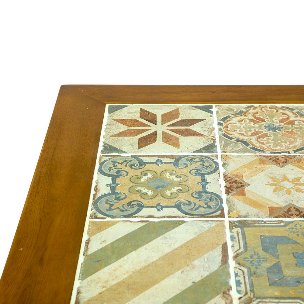 Objevte jídelní stůl, který v sobě spojuje rustikální eleganci a tradiční umění v jednom exkluzivním kusu nábytku. Tento krásný stůl má zdobenou keramickou desku harmonicky zasazenou do masivní dřevěné konstrukce . Každá dlaždice je pečlivě vybírána tak, aby vytvořila mozaiku, která evokuje řemeslné tradice, což z něj dělá jedinečný a fascinující kousek.