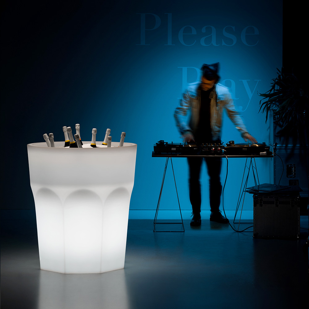 Tato dekorativní váza představuje ideální řešení kombinující design a praktičnost v jednom produktu díky zvláštnímu tvaru skla, který je spolu s LED osvětlením, které ji osvětluje, jedinečnou svého druhu, což vám umožní vybavit jakýkoli venkovní prostor vkusně a osobnost, která současně osvětluje prostor, ve kterém je umístěna. Výrobek je zcela vyroben v Itálii z polyethylenu, který se vyznačuje vynikající odolností proti slunci, nárazům a teplu. Narozen jako jednoduchá dekorativní váza pro střední / velké rostliny, je tento produkt také ideální pro večírky nebo venkovní akce používané k chlazení lahví naplněných ledem. Zahrnuje sadu LED studeného světla s 20W žárovkou třídy A, polykarbonátovým pouzdrem, 280 cm dlouhým černým kabelem a zástrčkou odolnou proti stříkající vodě.