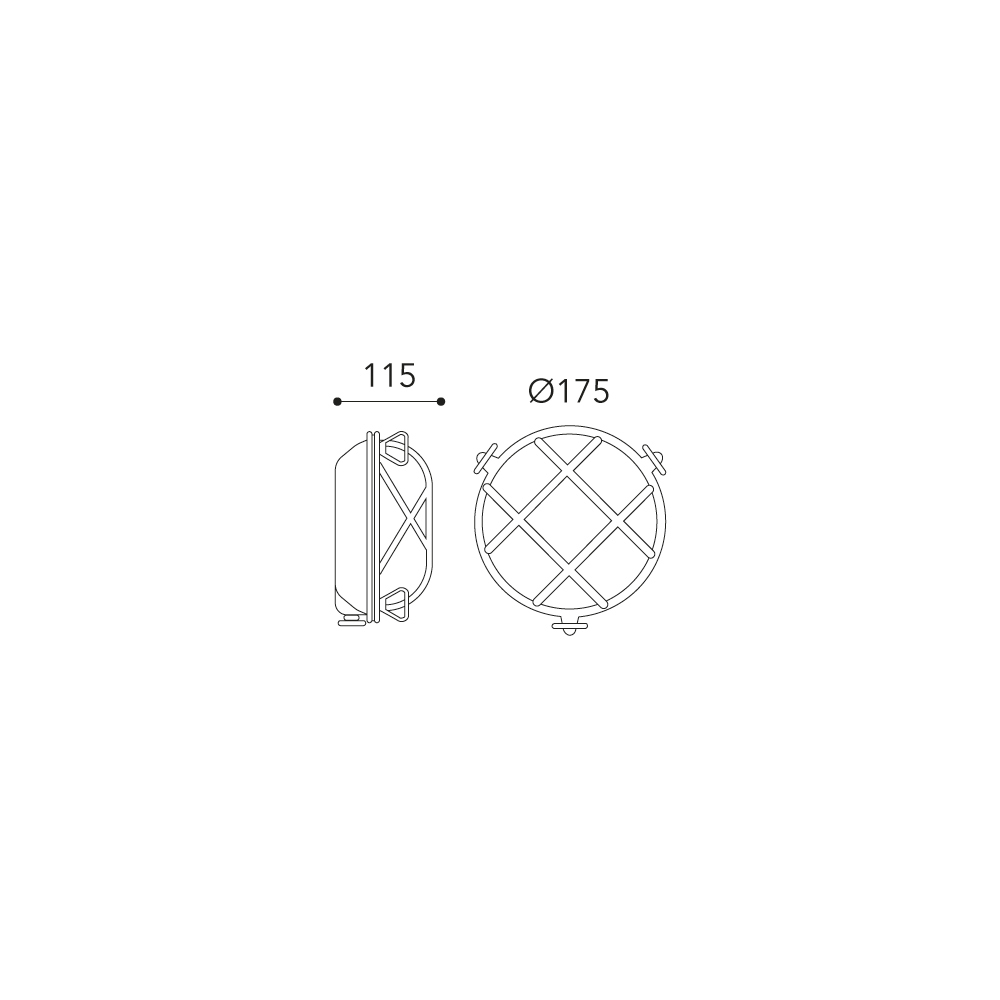 Kulatý difuzor z opálového skla je chráněn pevnou kovovou mřížkou , která připomíná námořnický a průmyslový svět a zároveň zajišťuje bezpečnost a odolnost . Světlo je funkční a obklopující , ideální pro osvětlení fasád , vchodů , venkovních schodišť a venkovních prostor .
