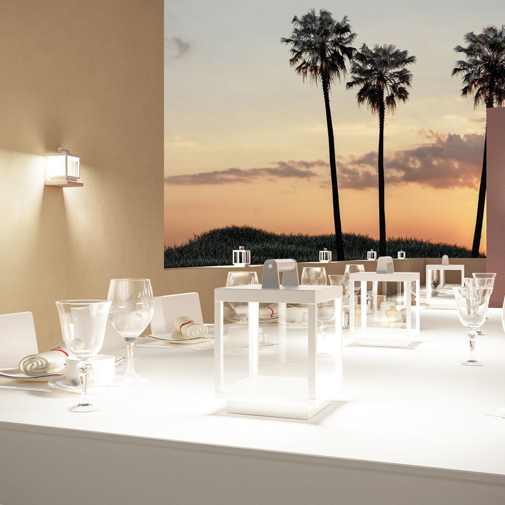 v minimalistickém a střízlivém stylu, ideální pro osvětlení každého domácího nebo smluvního prostoru osobitým a optimálním způsobem. Praktická přenosná konstrukce zvyšuje její funkční stránku a umožňuje její rychlé a snadné přemístění v případě potřeby.
