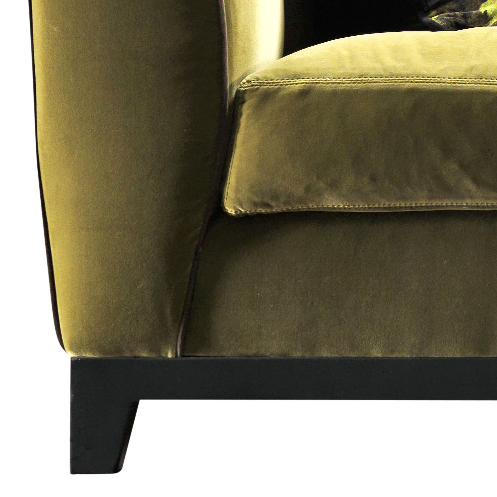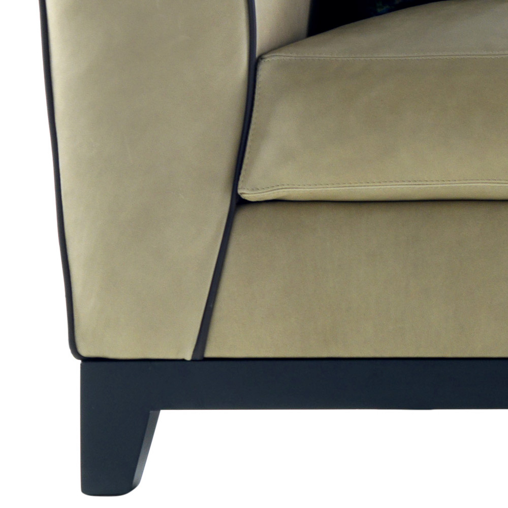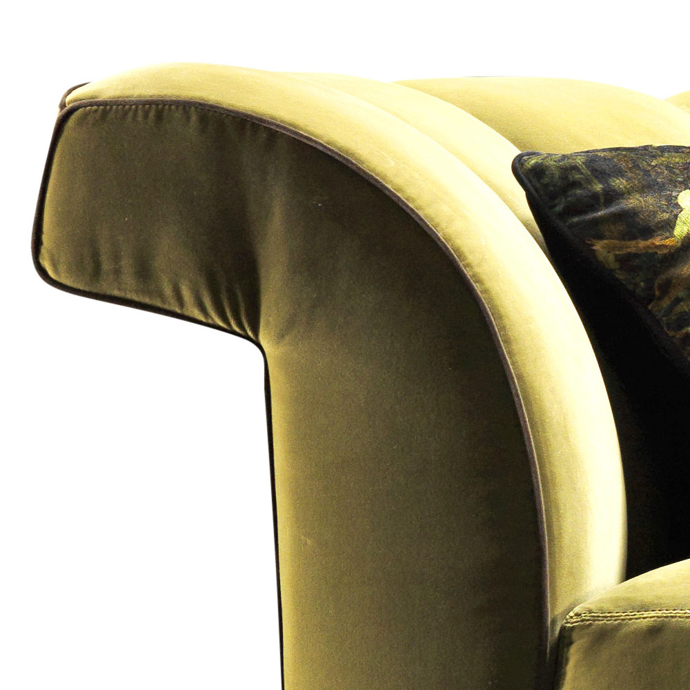 Ručně vyráběné v Itálii se strukturou (základna, záda a ramena) z masivního bukového dřeva; polstrování v polyuretanové pěně s rozlišovací hustotou, polštář sedáku v husí s pružnou polyuretanovou vložkou.