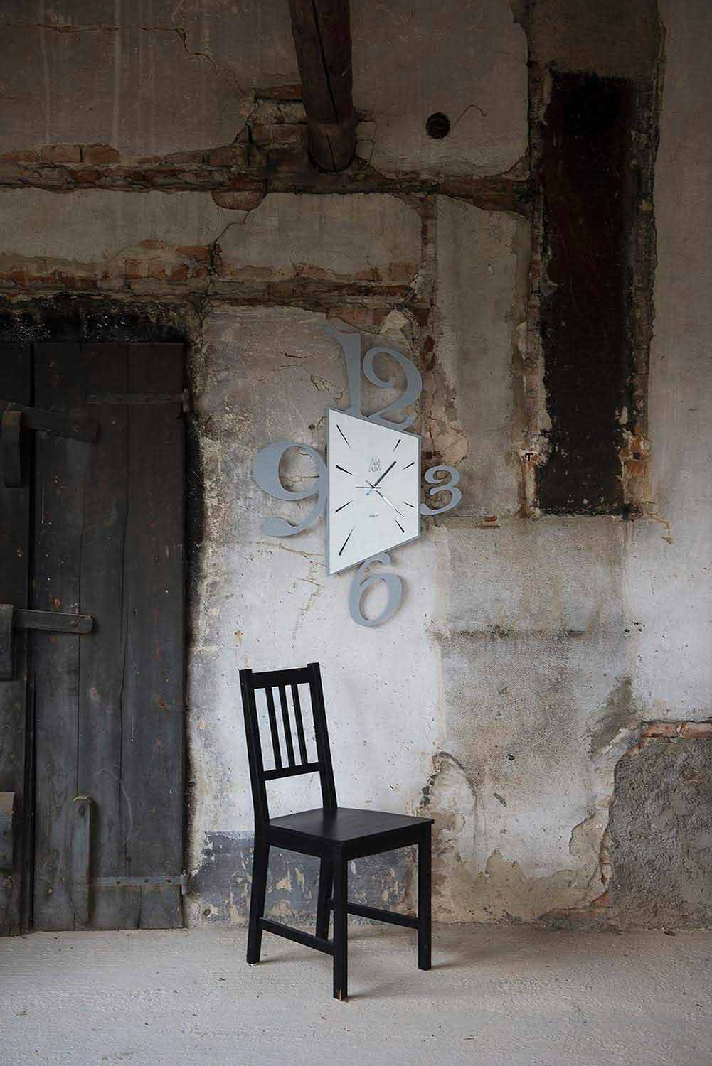 nástěnné hodiny nastíněné jednoduchými a originálními liniemi, perfektně přizpůsobitelné každému typu nábytku.