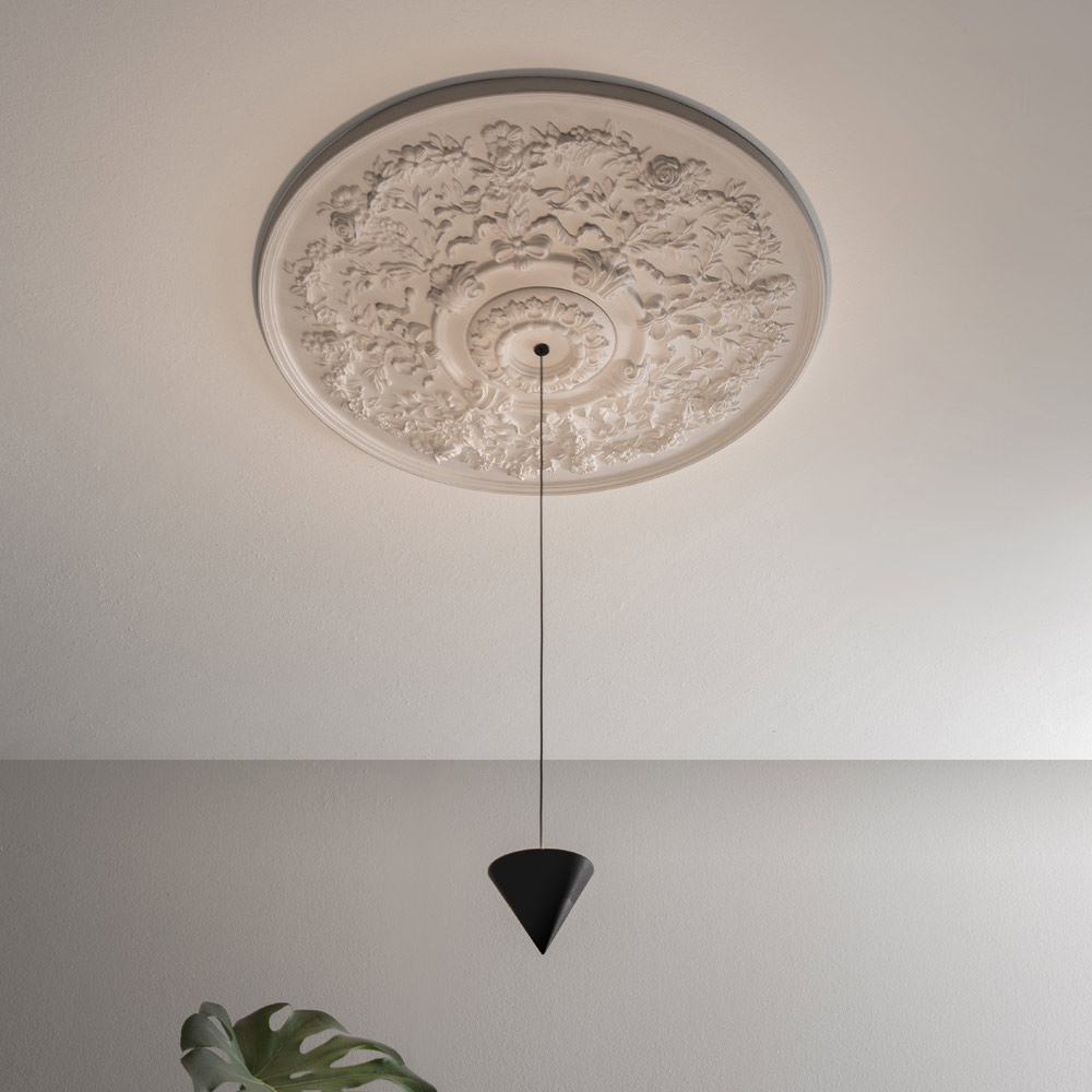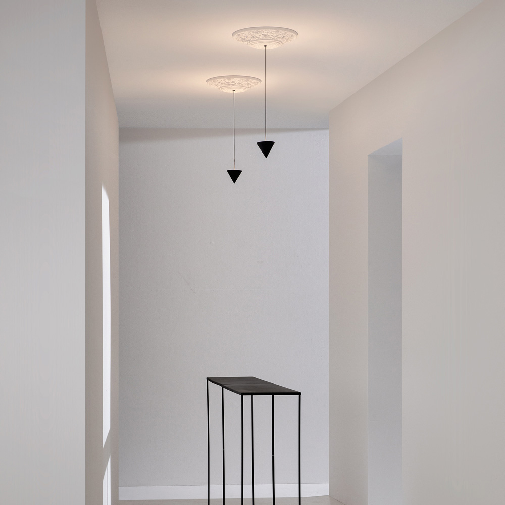 Lampa je vyrobena se sádrovou a hliníkovou strukturou pro zcela italský design, který díky nekonvenčnímu experimentování a neustálému výzkumu mezi tradicí a moderností dokáže ohromit, odvážit se a nadchnout, což vám umožní vyjádřit své emoce prostřednictvím originálního a osobního dekorativního použití. světla.
