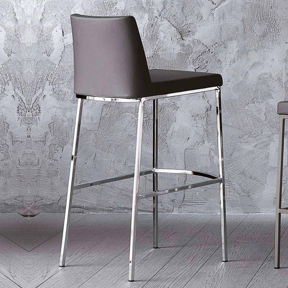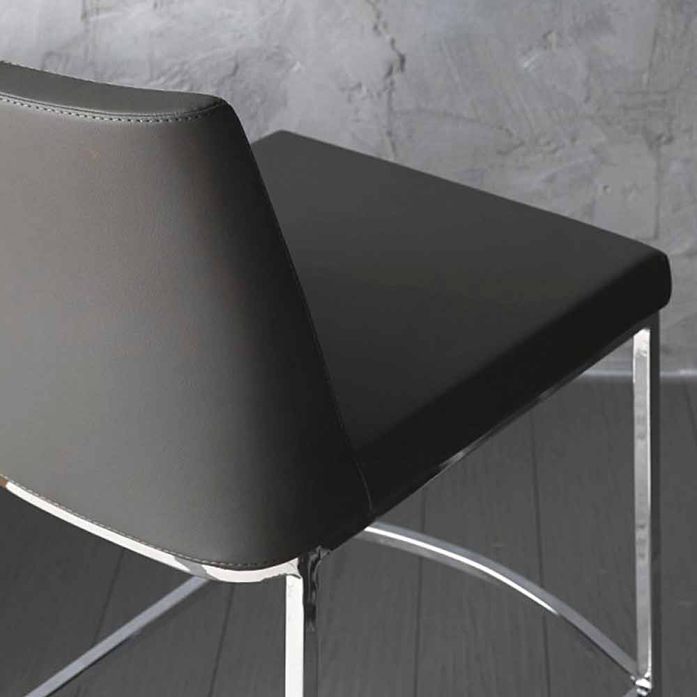 Stolička s kovovou konstrukcí a pěnové sedadla pokryté koženkou.