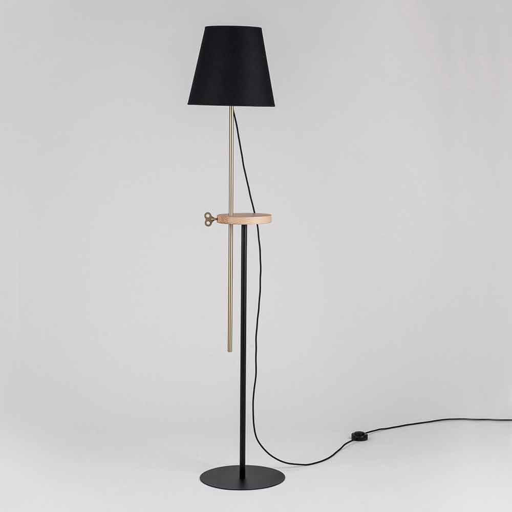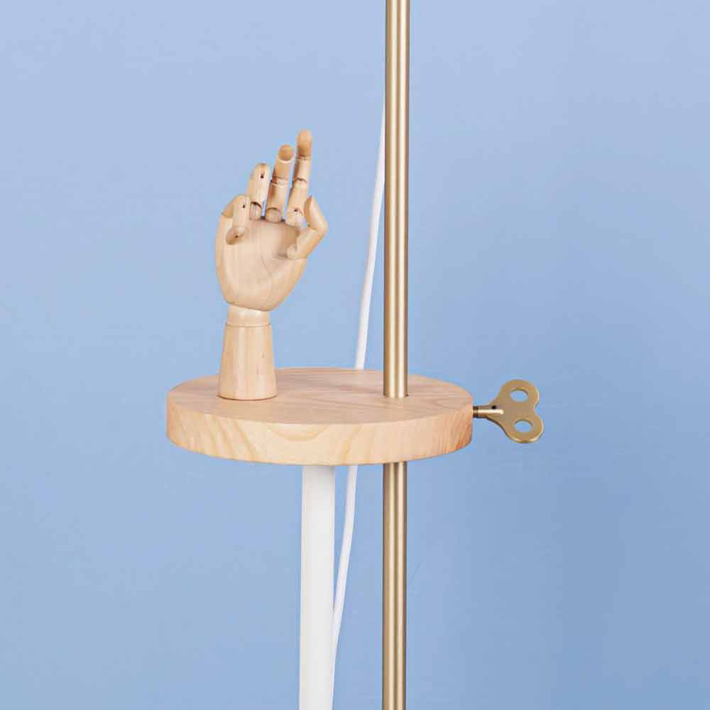 jasanového dřeva, která je užitečná jako podpěrná plocha, ale také a především jako základní technický prvek pro pohyb světelné části do různých výšek. Vložka ve tvaru klíče vyrobená z