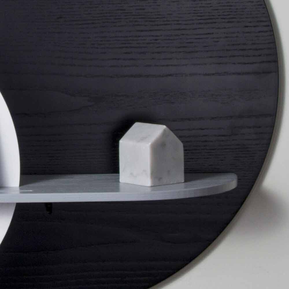 Jeho struktura se skládá ze 3 panelů různých tvarů vyrobených z bílé, černé a šedé mořené jasanové překližky , z nichž jeden je namontován na stěně, která představuje skutečnou opěrnou plochu, a dva vertikální panely, které dodávají pohyb a harmonii. Zvláštností této police je možnost přizpůsobit produkt kombinací 2 vertikálních panelů, které vám umožňují vybrat si mezi 8 různými konfiguracemi podle vkusu a potřeb.