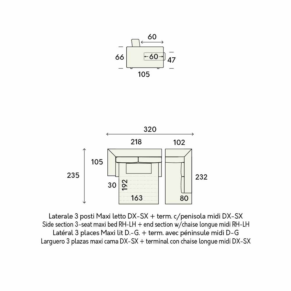 - L 320 x P 235 x H 85 cm (matrace: L 163 x P 192 x H 11 cm).