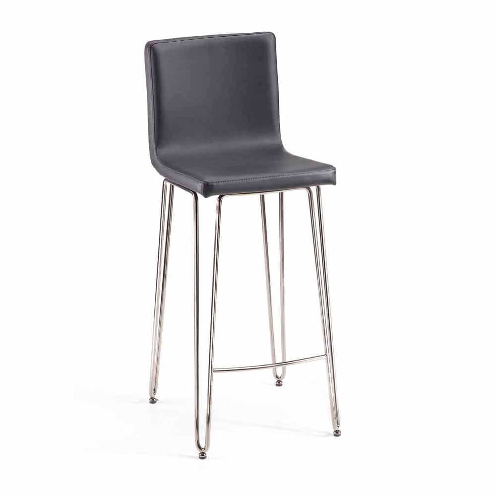 - kovové nohy v chromovém provedení a sedák pokrytý černou imitací kůží (materiál složený z bavlněného podkladu a vrstvy syntetického materiálu, odolný proti otěru a opotřebení)