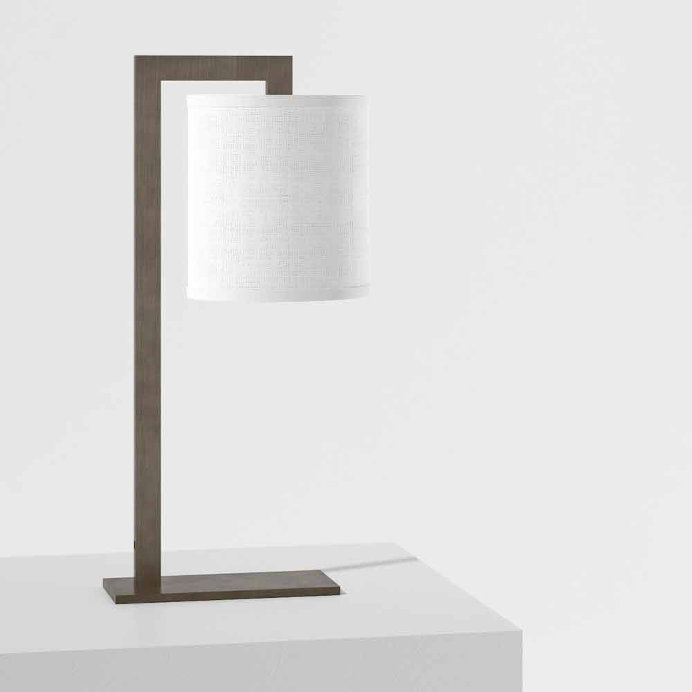 Moderní designová stolní lampa z kovu s plátěným stínidlem Made in Italy.