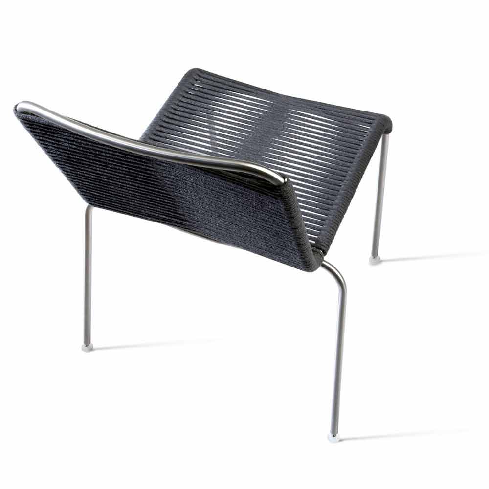 Jedná se o židli bez područek se saténovou konstrukcí z nerezové oceli. Sedák a opěrák tkané akrylovou šňůrou.