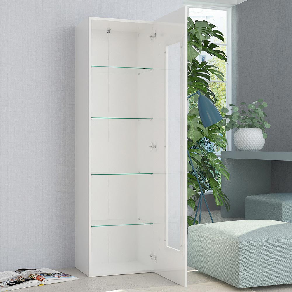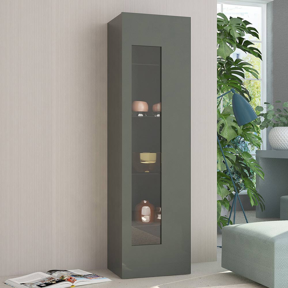 Příborník s dřevěnou vitrínou v různých povrchových úpravách vyrobený v italském designu obývacího pokoje.