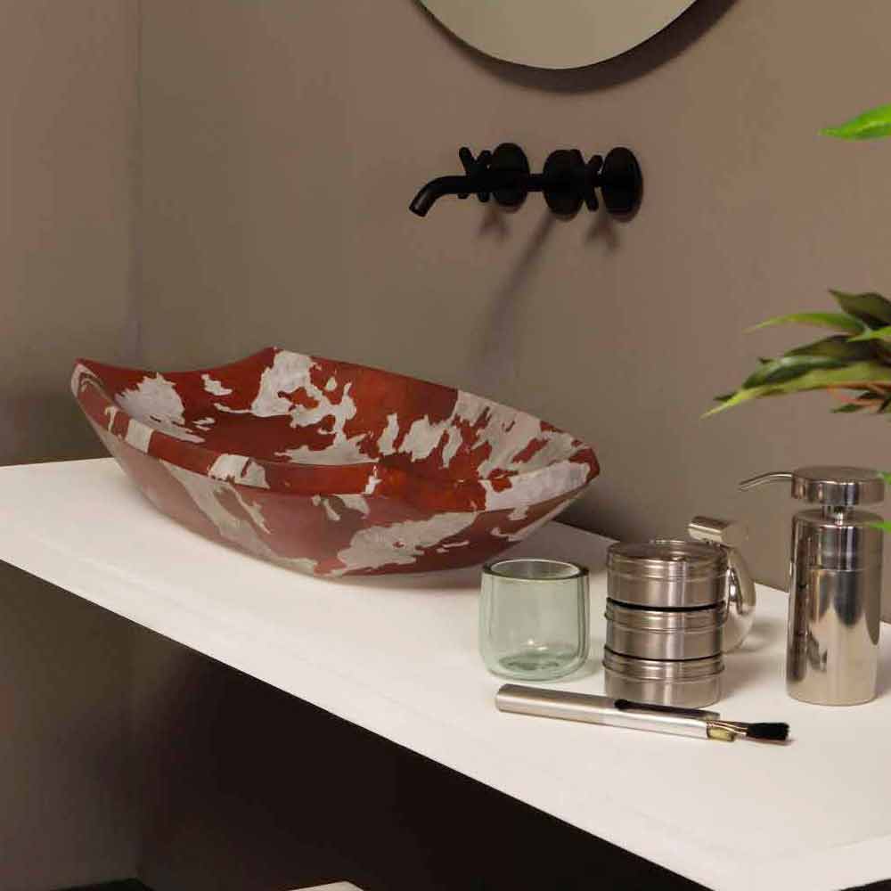 Toto umyvadlo lze přizpůsobit výběrem z různých povrchových úprav a dekorací: Chcete -li požádat o informace a / nebo o osobní nabídku, napište na adresu clienti@viadurini.it.