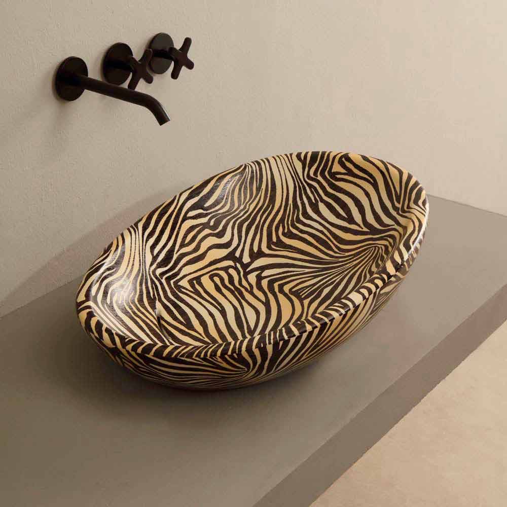 Toto umyvadlo lze přizpůsobit výběrem z různých povrchových úprav a dekorací: Chcete -li požádat o informace a / nebo o osobní nabídku, napište na adresu clienti@viadurini.it.