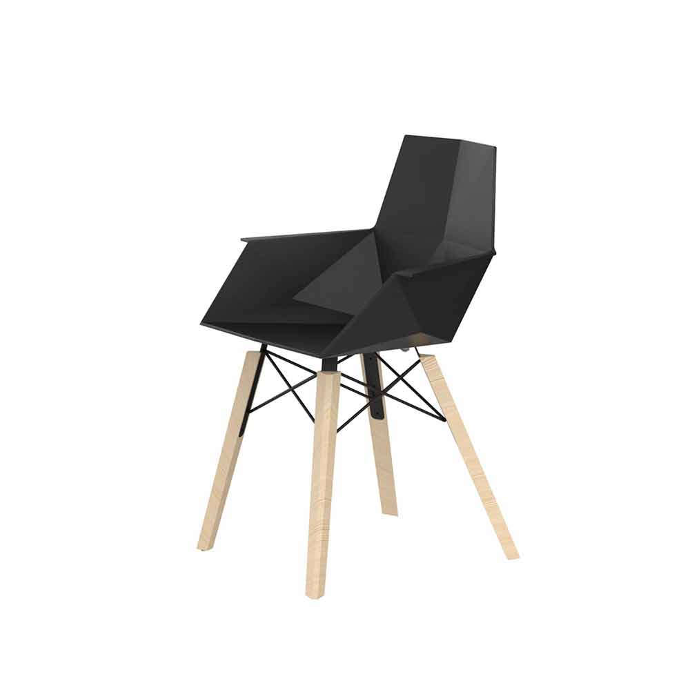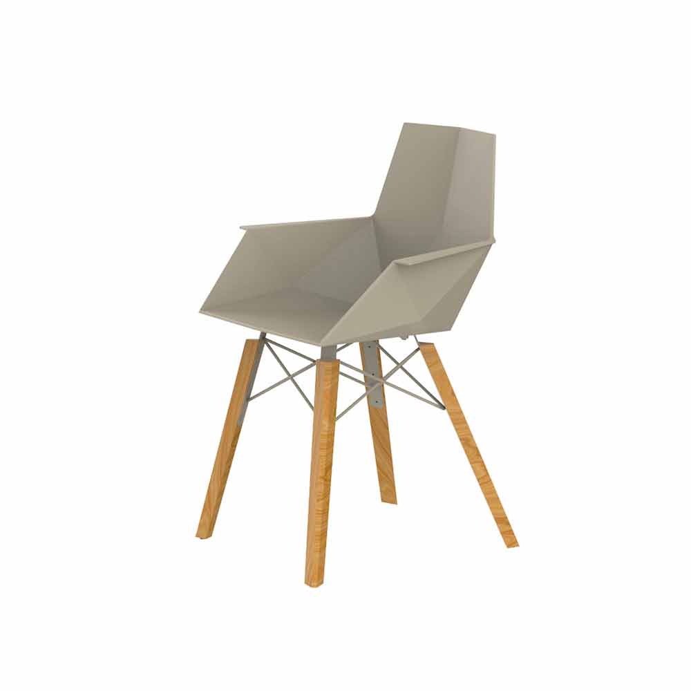 Designové křeslo z polypropylenu se strukturou z jasanového dřeva a sedák a opěrák z polypropylenu v různých barvách.