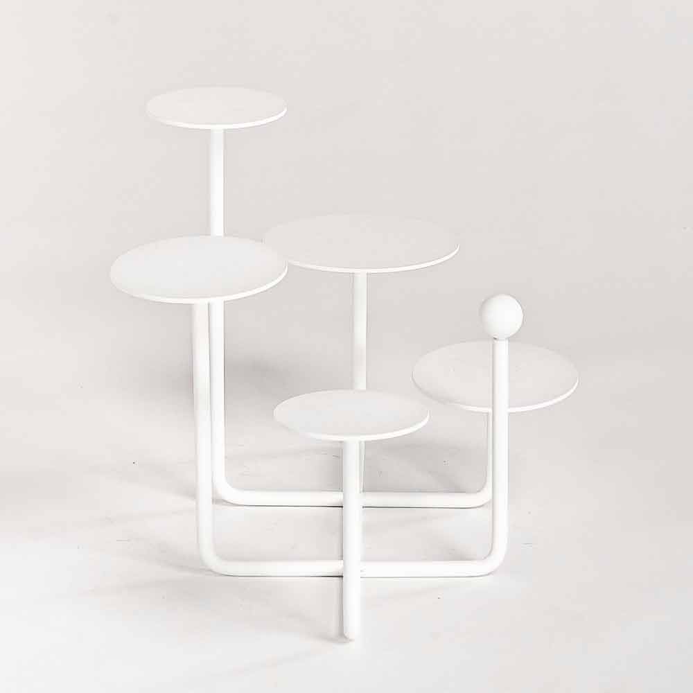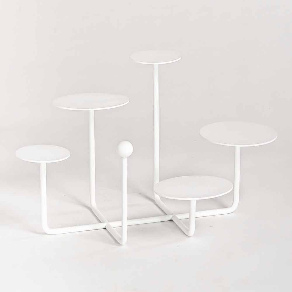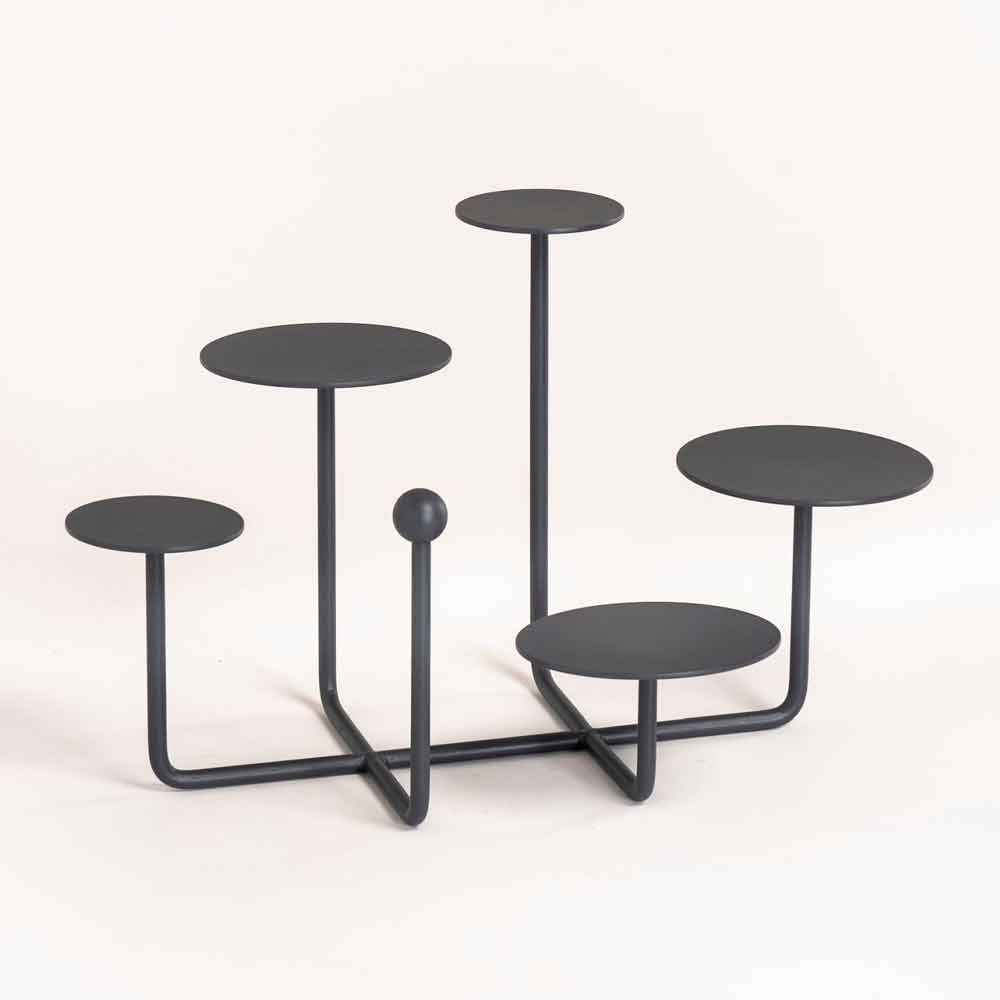 Tento backsplash je zcela vyroben v Itálii z lakované oceli RAL, což dává produktu moderní a rafinovaný design a jeho struktura je tvořena 5 praktickými kulatými vrcholy umístěnými v různých výškách, které jsou ideální pro malé pečivo nebo prstové jídlo. Díky svému tvaru a malé velikosti je tento produkt ideální umístit na stůl jako skutečný designový prvek, který pomáhá, aby se každý kulinářský výtvor stal skutečným uměleckým dílem.