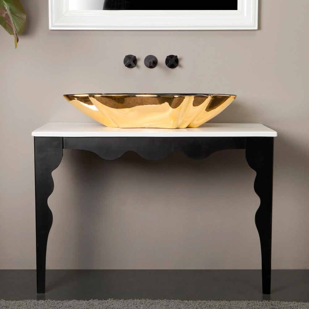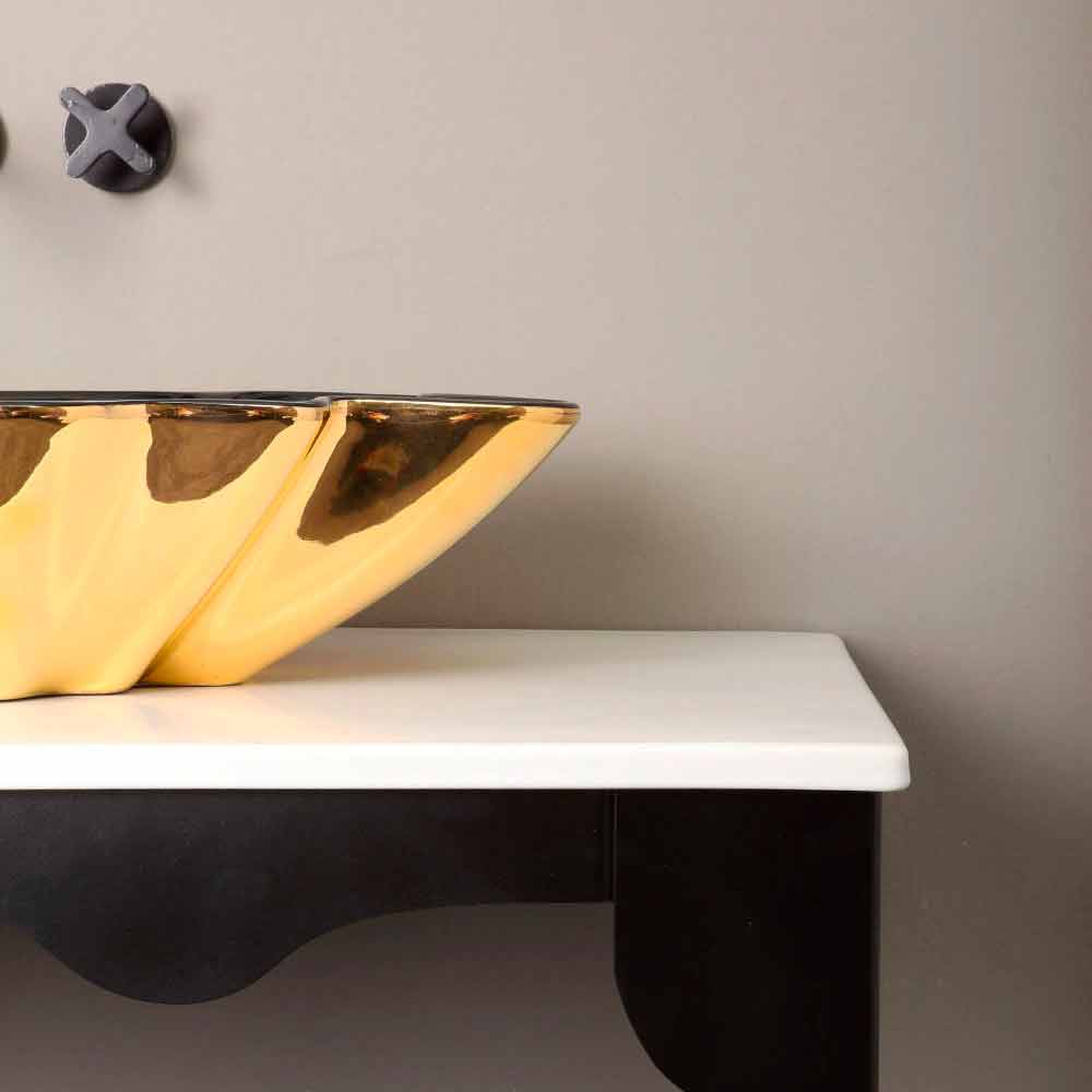 Černé a zlaté keramické umyvadlo na desku vyrobené v Itálii Rayan