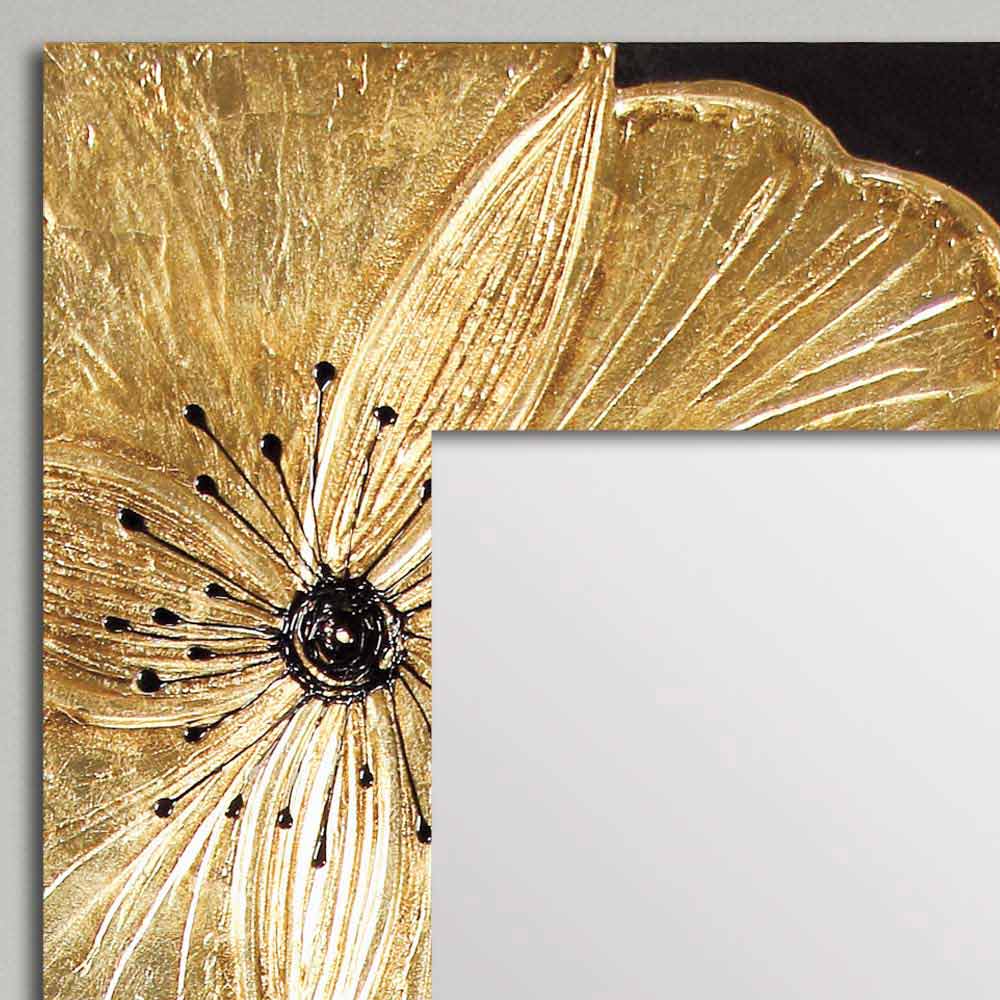 Dvojitá ručně dekorovaná konstrukce s pryskyřičnými detaily na vyvýšeném materiálu, zlatý a stříbrný list, konzolové zrcadlo, horizontální / vertikální vysílání, lesklý povrch.