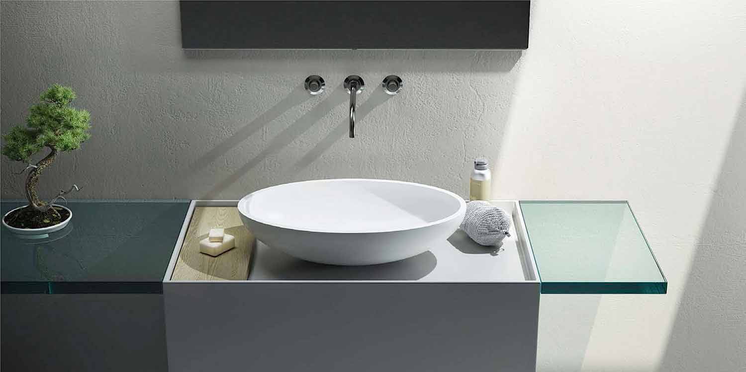 Oválné umyvadlo na desku v Solid Surface, Frascati