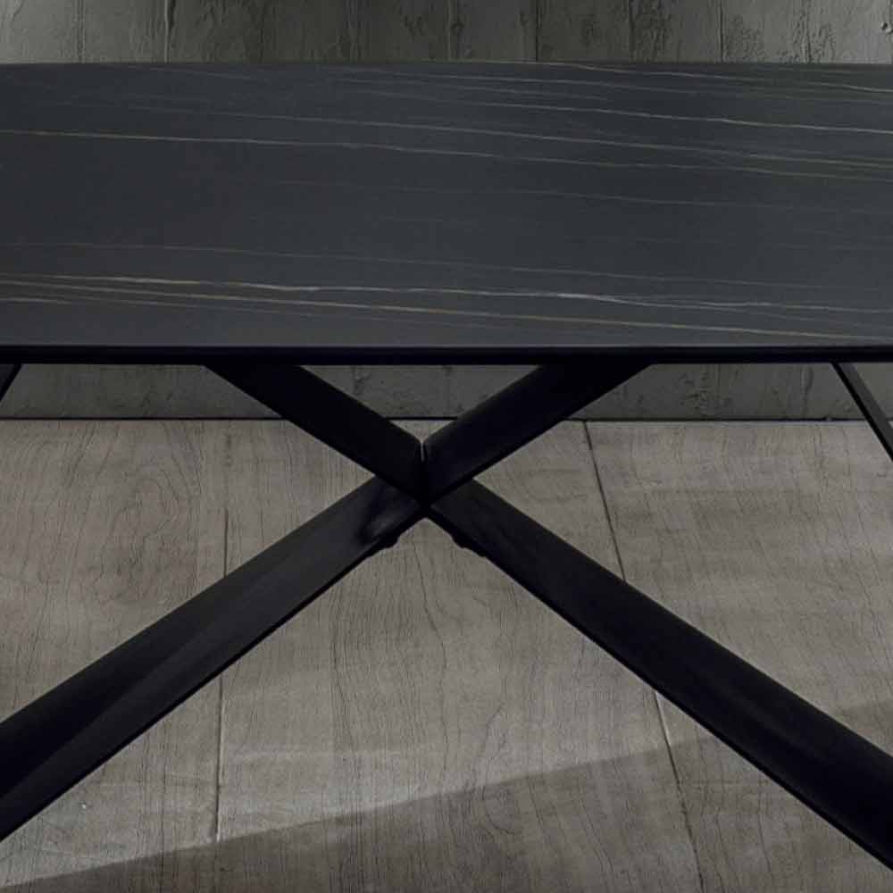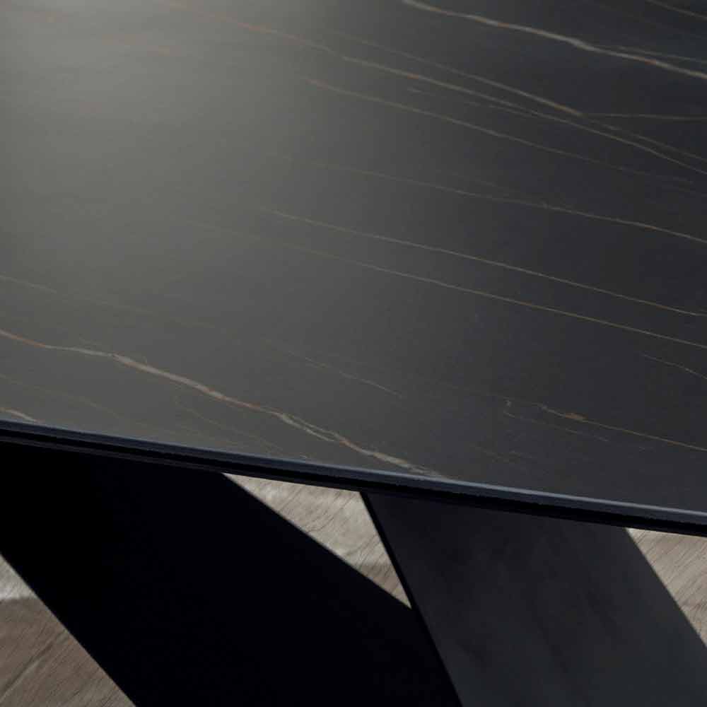 Tento jídelní stůl je produkt se silným vizuálním dopadem schopný dobýt střed scény s velkou elegancí. Jeho struktura je vyrobena z matně lakovaného antracitového kovu, zatímco horní část je tvořena horní vrstvou čisté keramiky s portoro efektem o tloušťce 6 mm, pod kterou je nanesena vrstva skla o tloušťce 8 mm, což dává keramice pružnost, což umožňuje zabránit poškození . Navíc díky velkému rozměru může stůl pojmout až 10 osob, což umožňuje oběd a večeři s přáteli. Tento článek se bezpochyby vyznačuje zvláštním designem základny, který díky geometrickým hrám vytvořeným kovovými deskami dává stolu pohyb a charakter . Kombinace vybraných materiálů a povrchových úprav umožňuje získat finální produkt s extrémně moderním designem, který je ideální pro vybavení pokojů sofistikovaným a elegantním vkusem.