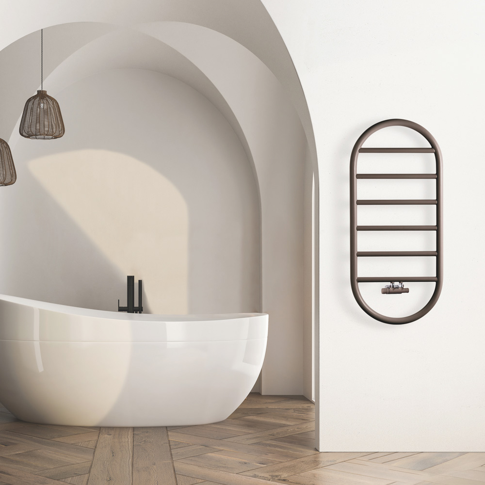 Tento sofistikovaný ocelový radiátor se vyznačuje výrazným oválným designem doplněným vodorovnými lištami, které zvýrazňují jeho eleganci a činí z něj stylové ohnisko v jakémkoli prostředí, ve kterém je umístěn. Díky své povrchové úpravě tento ohřívač slouží nejen jako účinný zdroj tepla, ale také jako úžasný dekorativní prvek, ideální pro přidání nádechu luxusu a modernosti do vašich prostor.