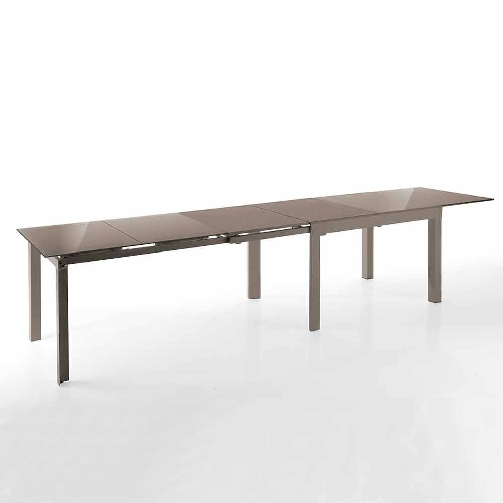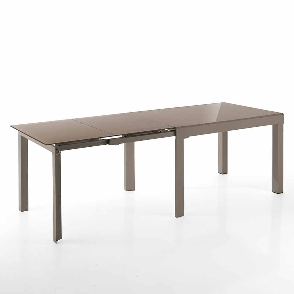 - tvrzená skleněná deska malovaná v taupe a kovová základna malovaná v matném taupe;