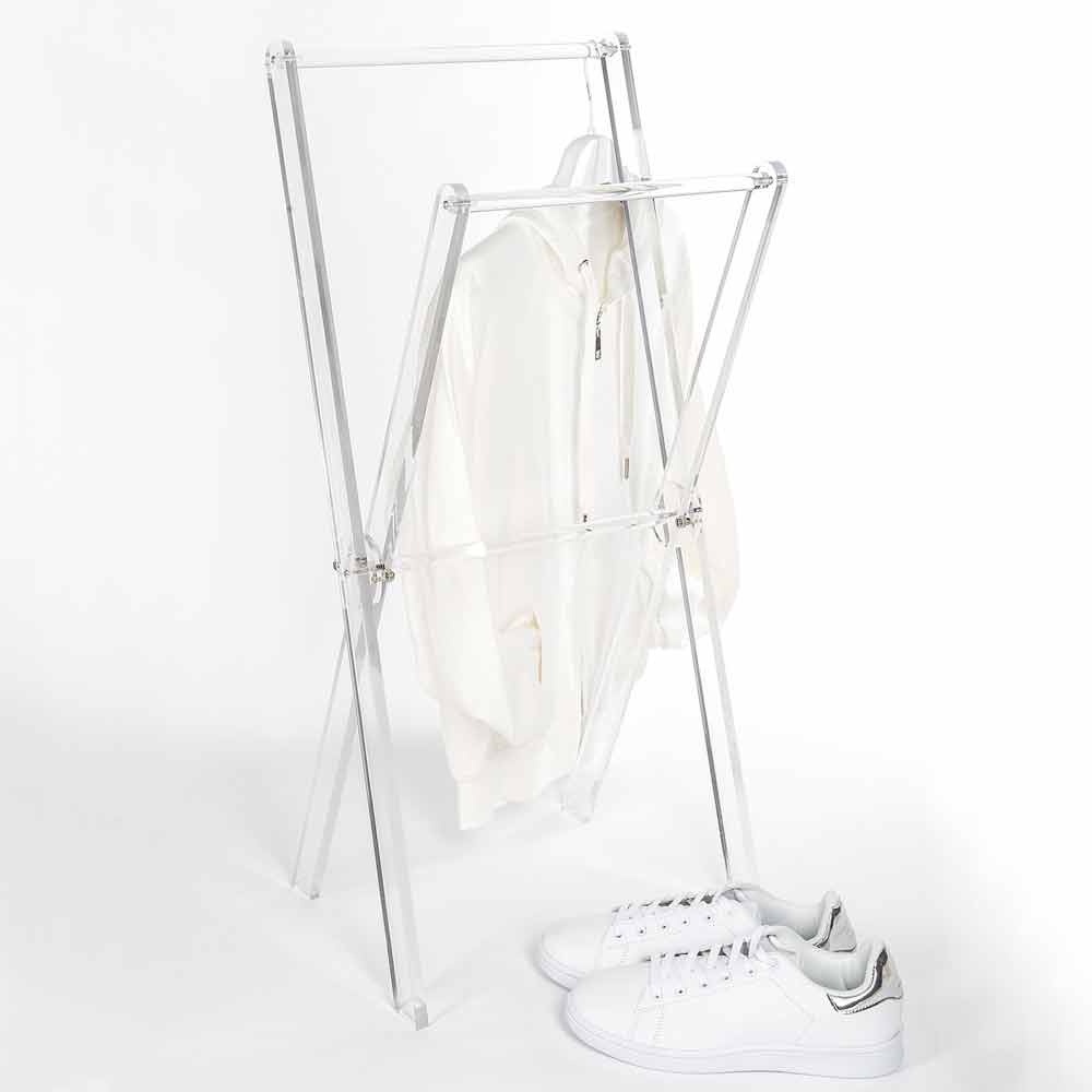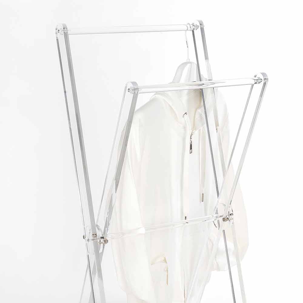 Podlahový držák na ručník z průhledného plexiskla nebo z moderního designového dřeva vyrobeného v Itálii.