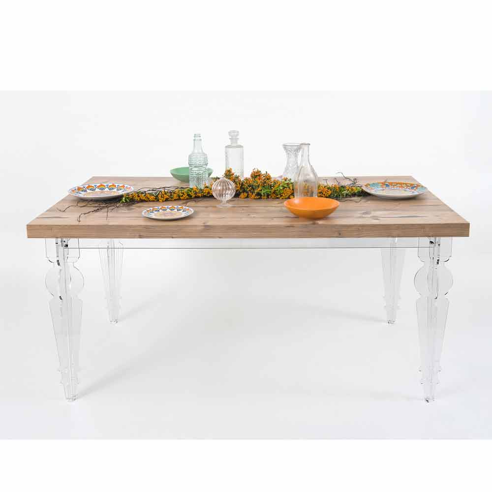 Pevný stůl z jedle a plexiskla vyrobeného v Itálii, Castro