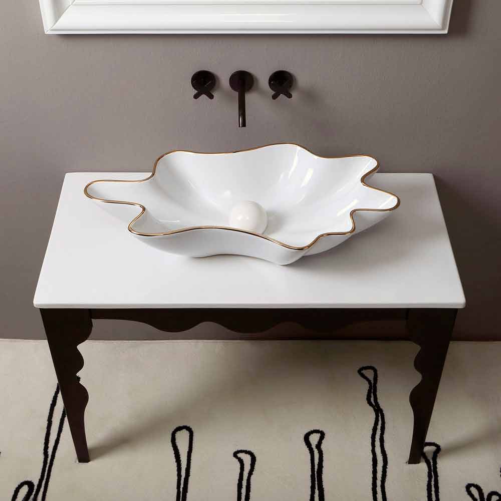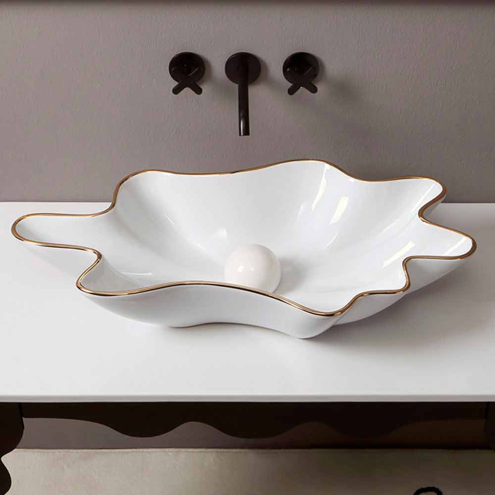 Bílé keramické umyvadlo na desku se zlatým okrajem vyrobené v Itálii Rayan