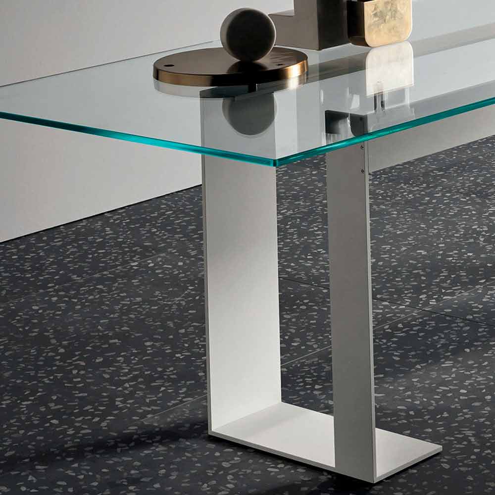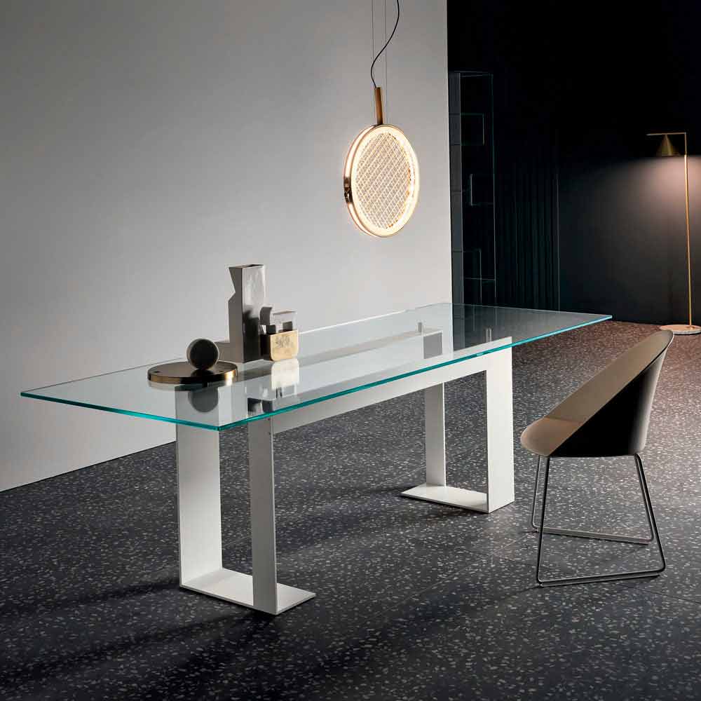 Jídelní stůl z extra čirého skla a kovových nožiček, 4 rozměry vyrobené v Itálii.
