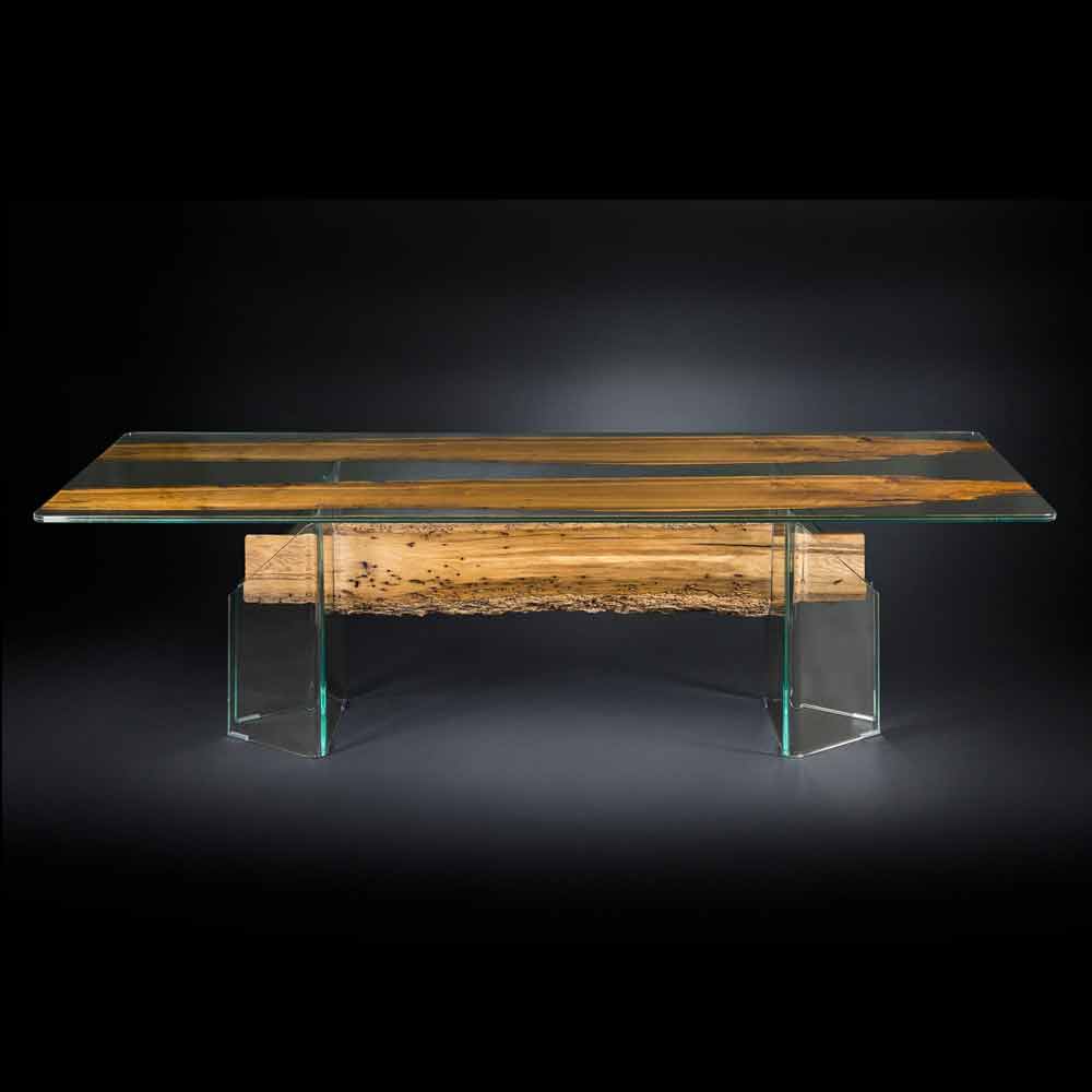 Venice je jedinečný a výjimečný tabulka, v něm je obsažena historii a hold města Benátky a jeho „Briccole“ znamená dubové kůly a dub používané pro tisíciletí hlásit do vnitrozemských oblastí laguny lodí. Toto dřevo se používá jako základní prvek tabulky. Každý delfín, na konci svého života, a je nahrazen Viadurini vybral ke zneužití této „re-použití“ materiálu dopravního objekt pouze k nábytku ve světě krásy a kouzlo tohoto města. Venezia připojí tabulku tvrzeného dřeva šarm časem a přírodou, sklo, připomínají průhlednost vody, královna města. V tabulce je ve skutečnosti vyrobené s obdélníkovým rovině vyrobené ze dvou vrstev skla + 10 mm a 10 ve spojení mezi dvěma vrstvami v patře je tenká dřevěná část briccola ve věku dubu.