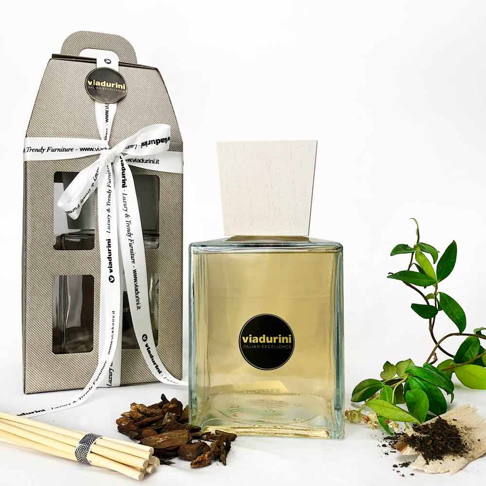 Domácí vůně kořeněná dřevem s tyčinkami - esence Made in Italy.