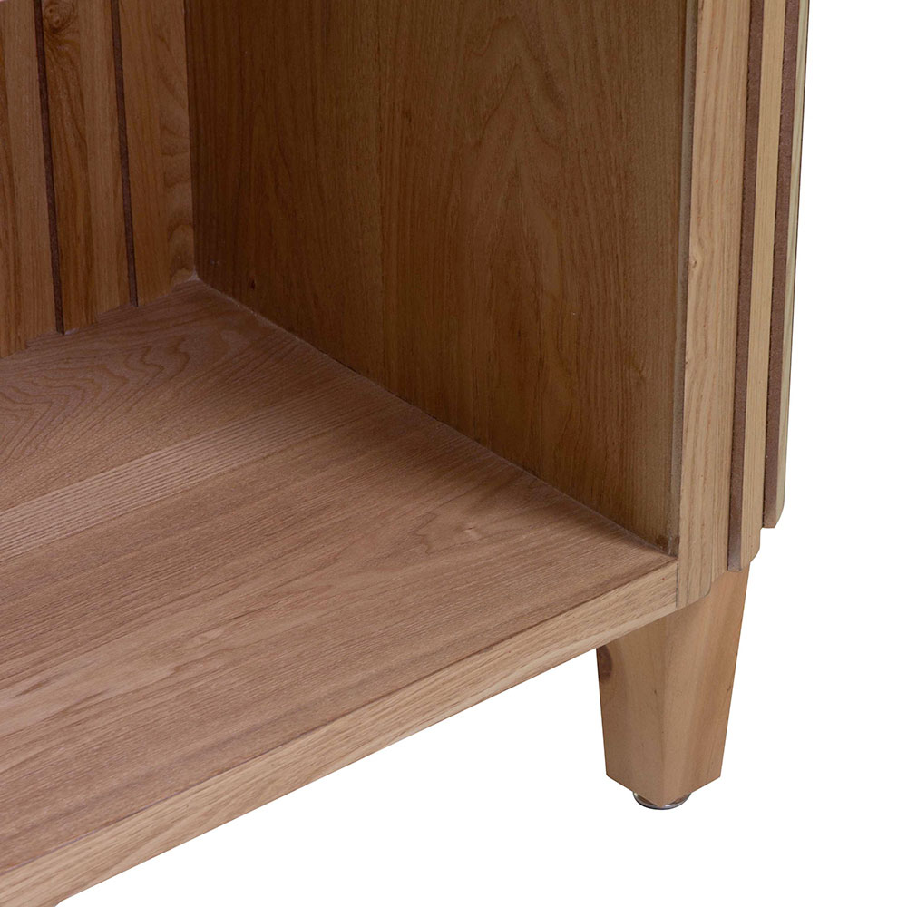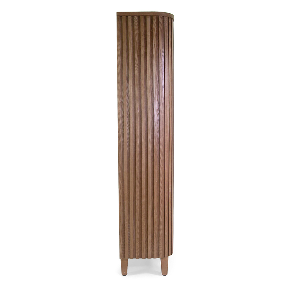 Tato elegantně navržená knihovna je vyrobena z dýhy MDF s povrchovou úpravou, která evokuje teplo a autentičnost přírodního dřeva. Její masivní nohy z jedlového dřeva zajišťují stabilitu a odolnost, takže je ideální volbou do každého prostoru. Svislé linie na bočních plochách dodávají řemeslnou rafinovanost , zatímco prostorné otevřené police poskytují dostatek místa pro vystavení knih, dekorativních předmětů nebo rostlin. Tato knihovna je ideální pro vylepšení obývacích pokojů, kanceláří nebo čtenářských koutků a kombinuje funkčnost a moderní styl pro dekor, který vynikne.