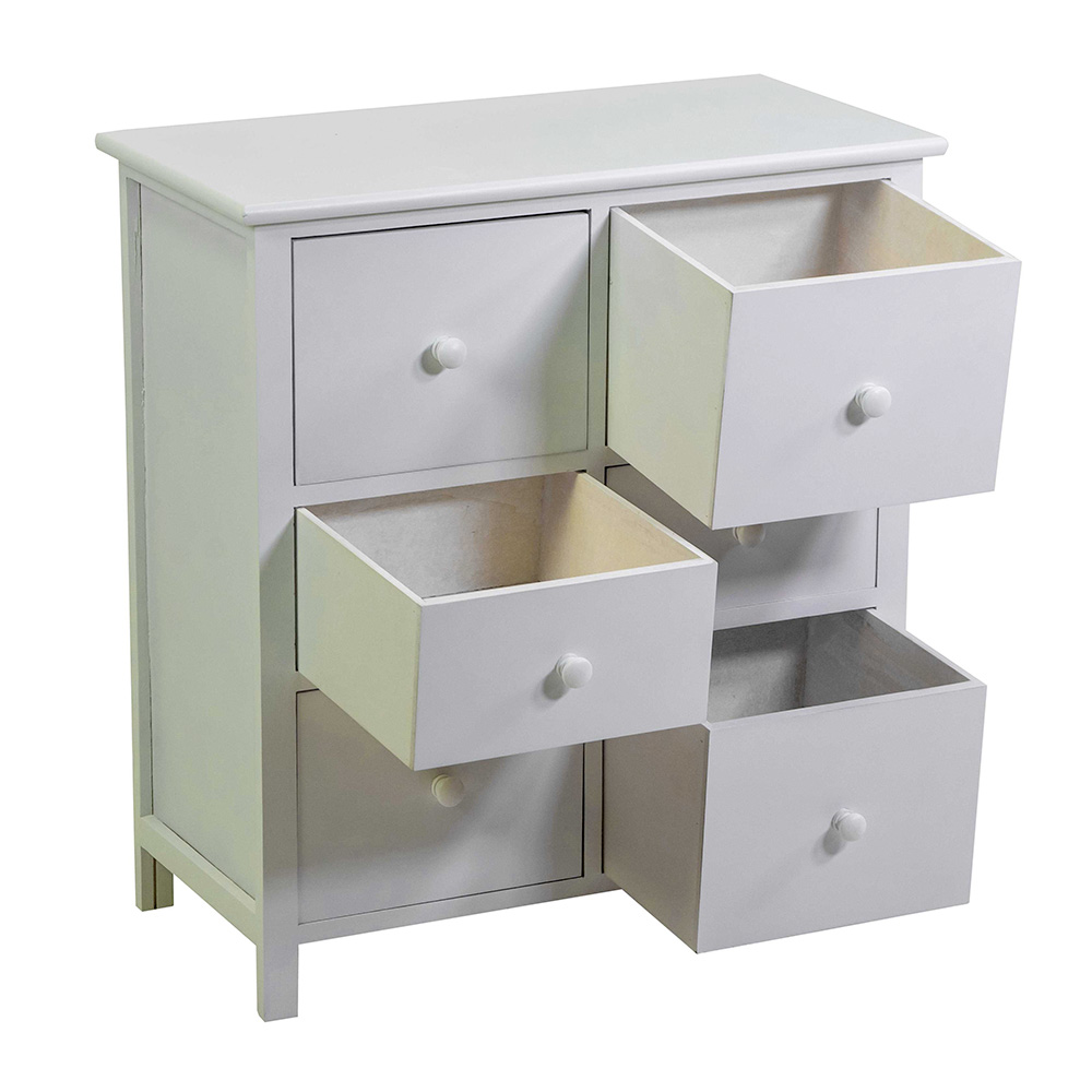S 6 zásuvkami , nabízí velké úložné řešení ideální pro ukládání předmětů denní potřeby, nádobí, textilu nebo dokumentů, díky kterému bude vše úhledné a nebude na očích. Díky čistým liniím a minimálnímu designu je mimořádně univerzální : ideální do obývacích pokojů, ložnic, koupelen nebo vstupních hal.